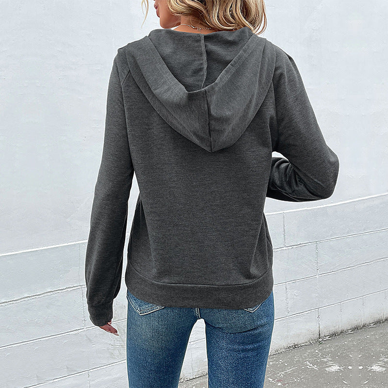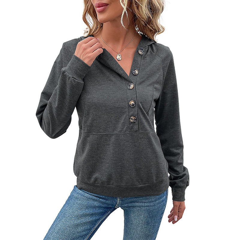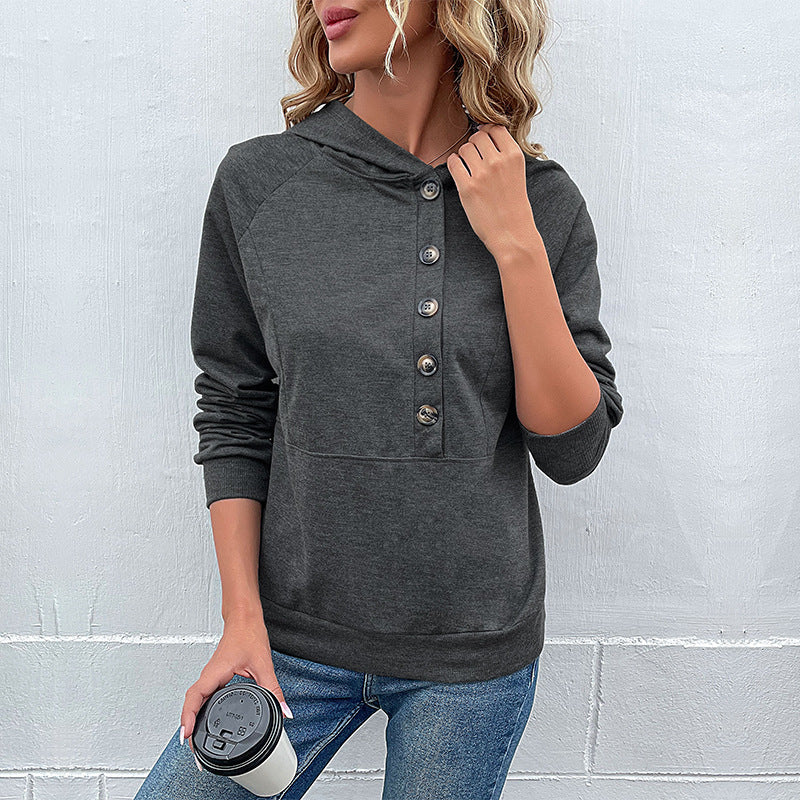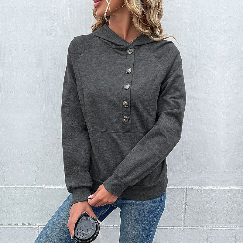 Opdag vores afslappede hættetrøje til damer med knaplukning og raglanærmer, der forener både komfort og stil. Denne trøje er perfekt til afslappede dage eller uformelle udflugter.