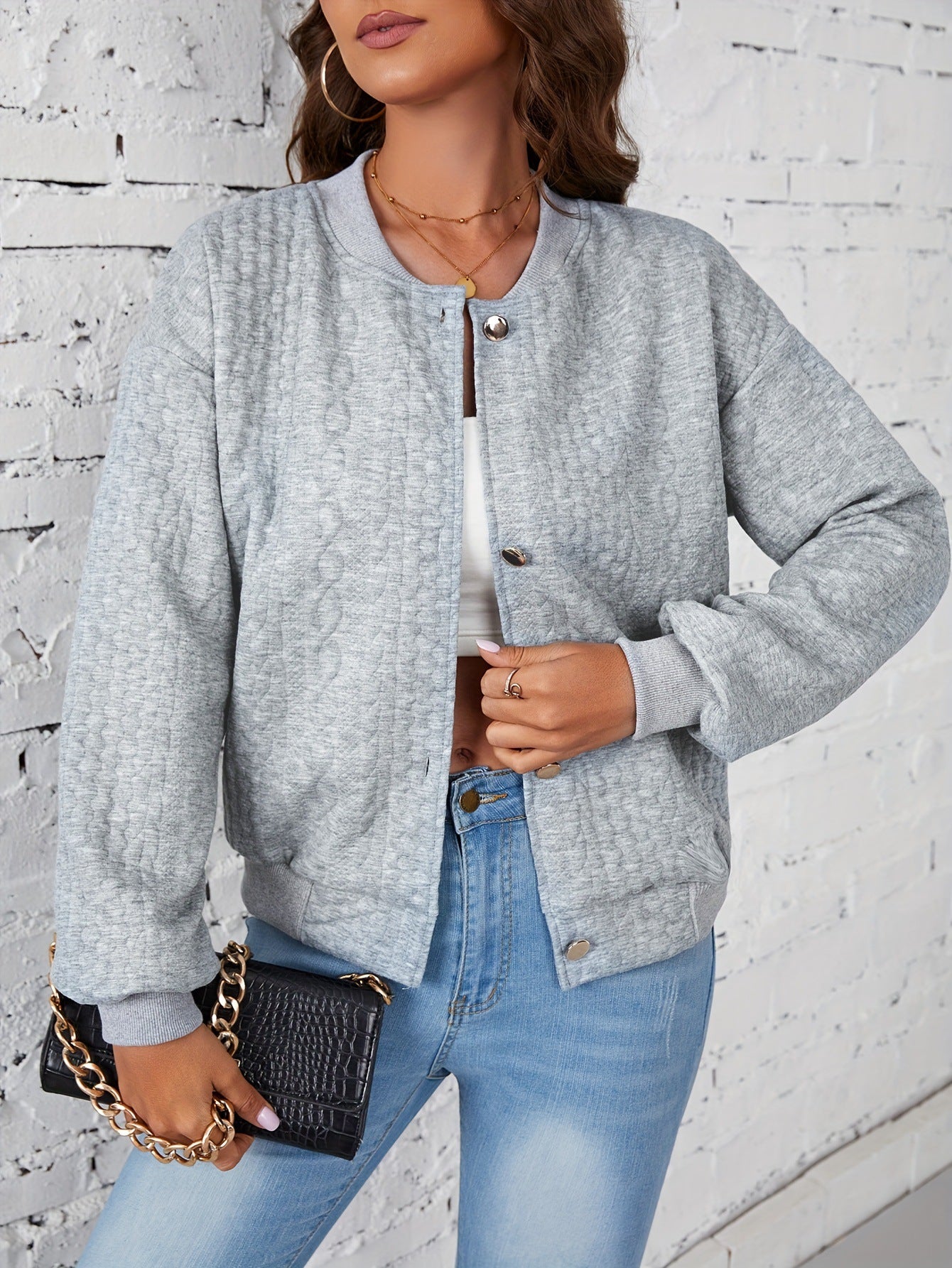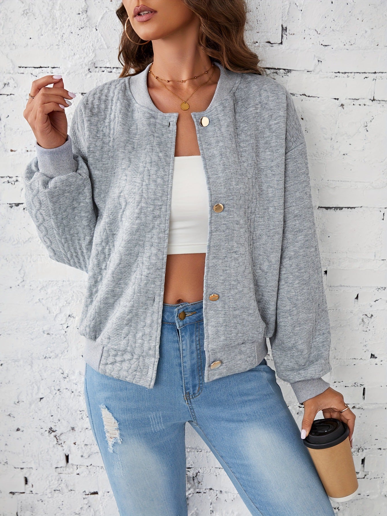 Opdag vores damers afslappede og moderigtige bomberjakke i struktureret stof fra Stilla. Denne stilfulde jakke er den perfekte følgesvend til det daglige look og kendetegnes ved sin unikke tekstur, der forener både komfort og elegance.
