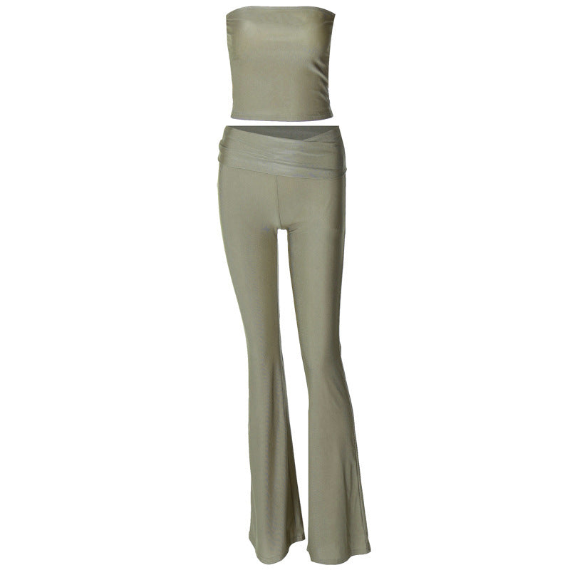Opdag det stilfulde dames Crop-Top og flared bukser sæt fra Stilla, der forener elegance og komfort. Dette sæt består af et figursyet Crop-Top med fine spaghetti-stropper, der skaber en feminin silhuet, og dertilhørende flared bukser, der øger det moderne look.