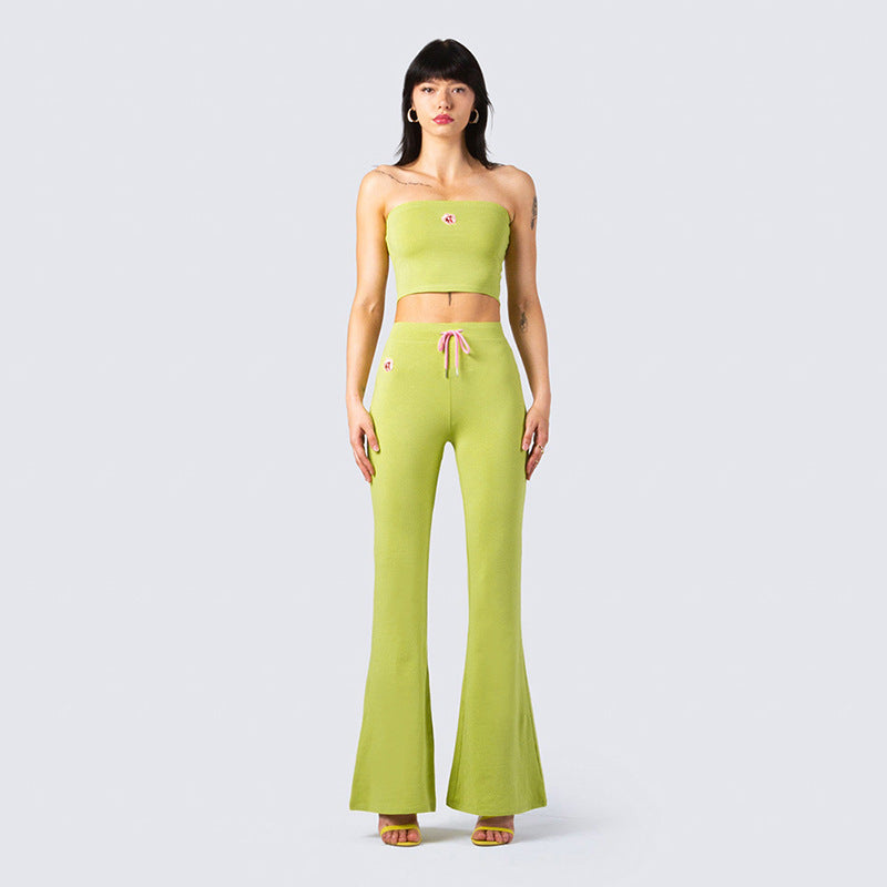 Opdag vores stilfulde Crop-Top og Flared-High-Waist-Bukser Set, der er perfekt til det afslappede sommerlook. Dette sæt kombinerer komfort og fashionable detaljer, ideelt til afslappede dage eller udflugter med venner.