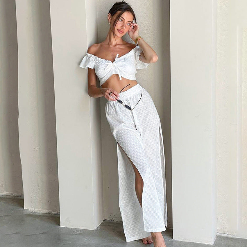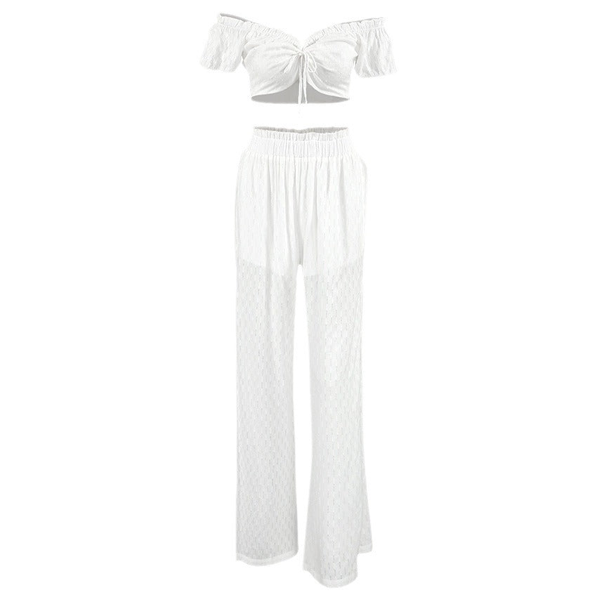 Opdag det perfekte sommeroutfit med vores stilfulde dames Crop-Top og de afslappede Palazzo-bukser med høj talje fra Stilla. Ideel til varme dage, tilbyder dette sæt både komfort og elegance.