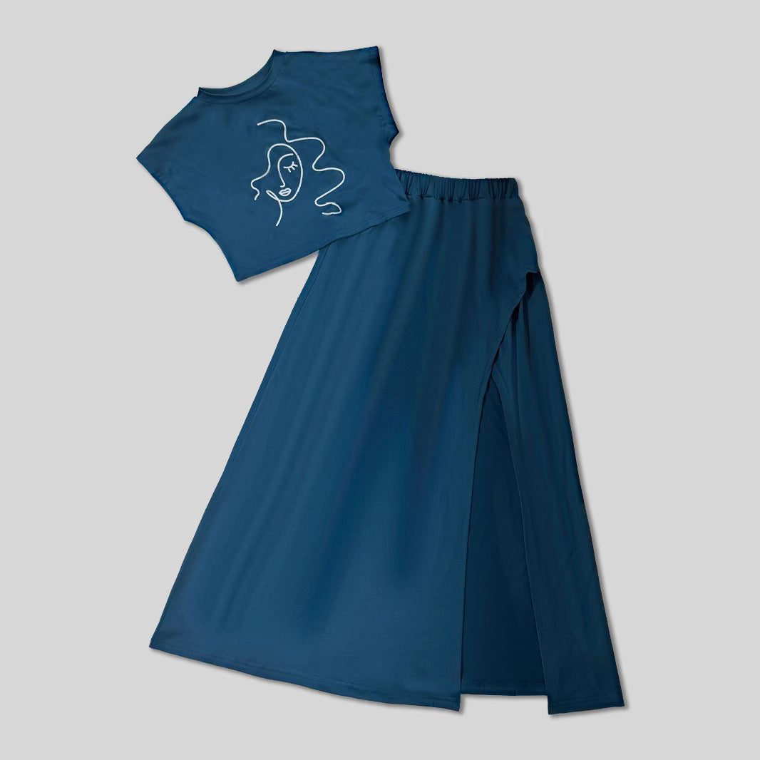 Opdag vores stilfulde dames Crop-Top og maxiskørt sæt, perfekt til varme dage og afslappede lejligheder. Dette afslappede sæt kombinerer komfort med modepræg.