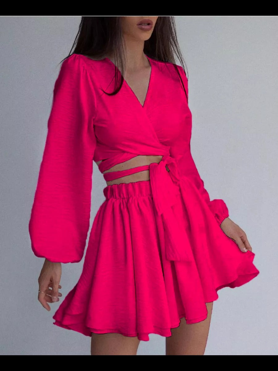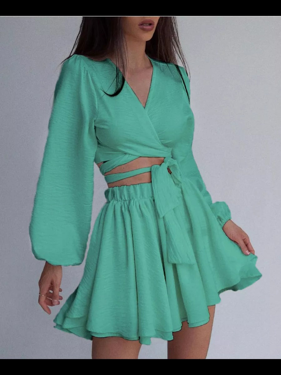 Opdag det stilfulde dames Crop-Top og nederdel sæt fra Stilla, der forener elegance og komfort. Dette eksklusive sæt fanger med sit moderne omslag design, der skaber en feminin silhuet og er perfekt til enhver lejlighed.