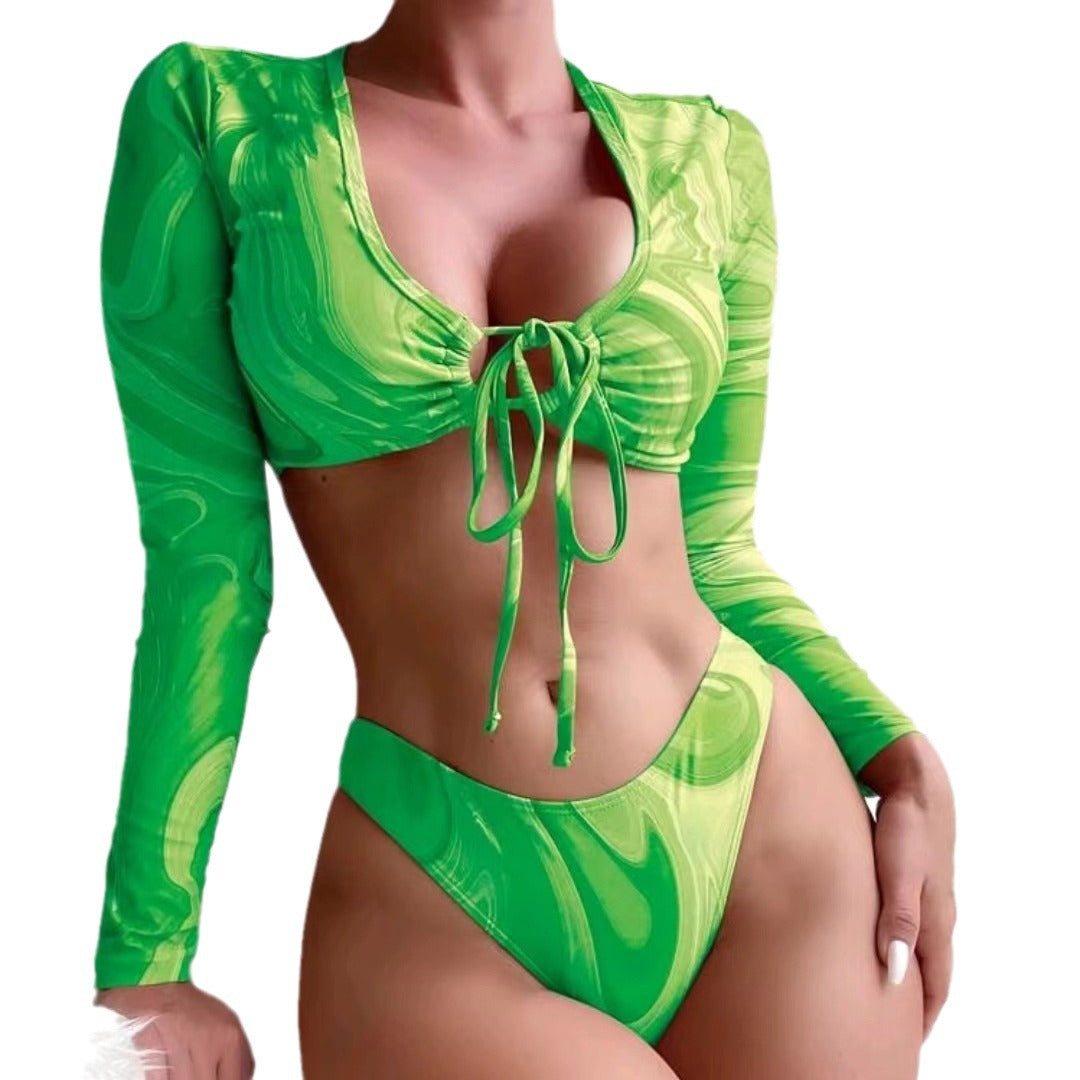 Opdag den stilfulde og moderne damers cropped bikini-top med lange ærmer. Dette unikke design kombinerer stilfulde effekter med optimal bærekomfort og er perfekt til stranden eller ved poolen.