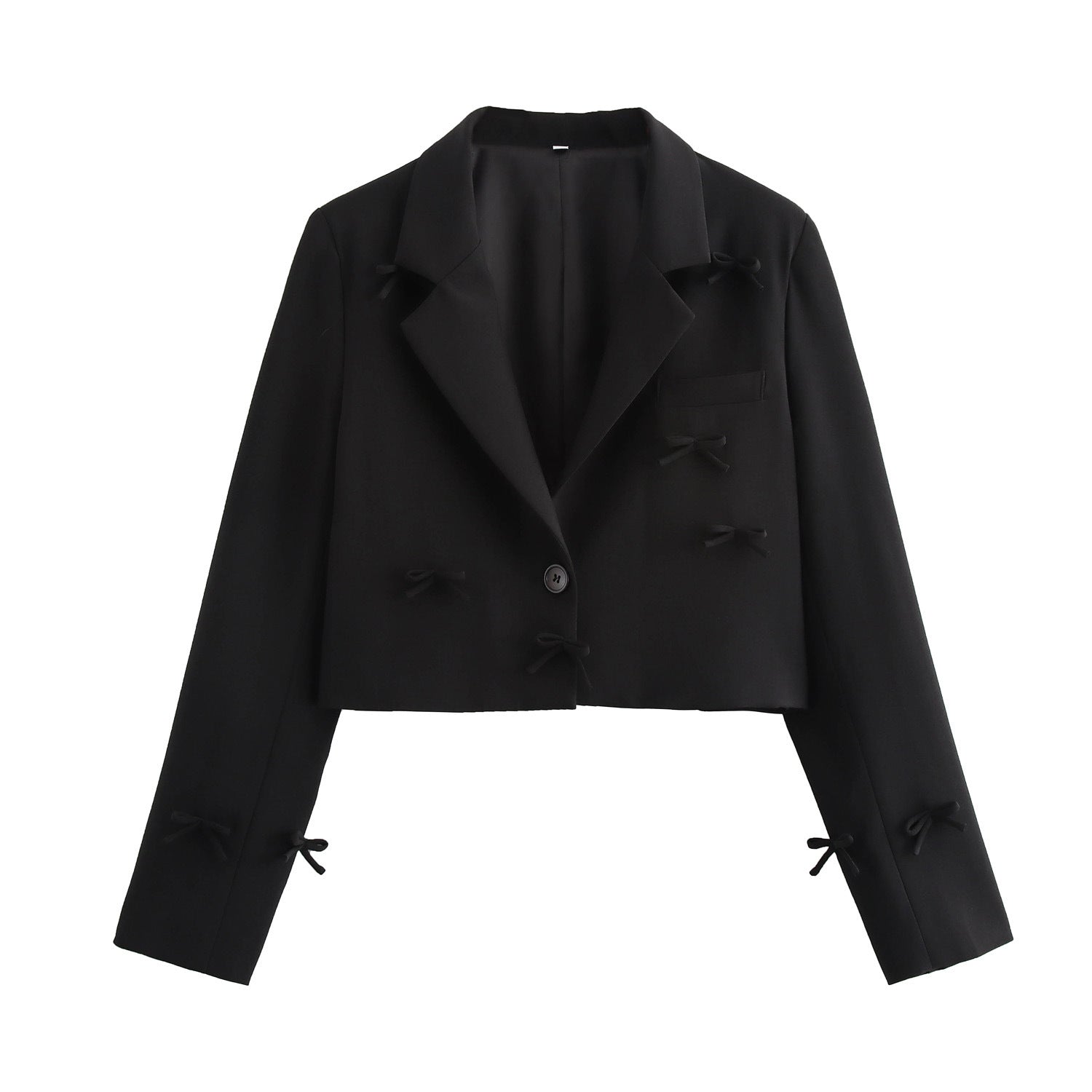 Opdag den perfekte Cropped Blazer til stilbevidste damer, der tilføjer et strejf af elegance til ethvert outfit. Med sin modige snit og de raffinerede sløjfedetaljer er denne blazer ideel til mange lejligheder, hvad enten det er på kontoret, til middag eller ved særlige anledninger.
