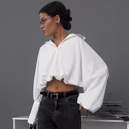 Oplev den perfekte kombination af elegance og komfort med vores dames cropped bluse. Dette fashionable top imponerer med sine voluminøse ærmer og den elegante ståkrave, der giver ethvert look en særlig note.