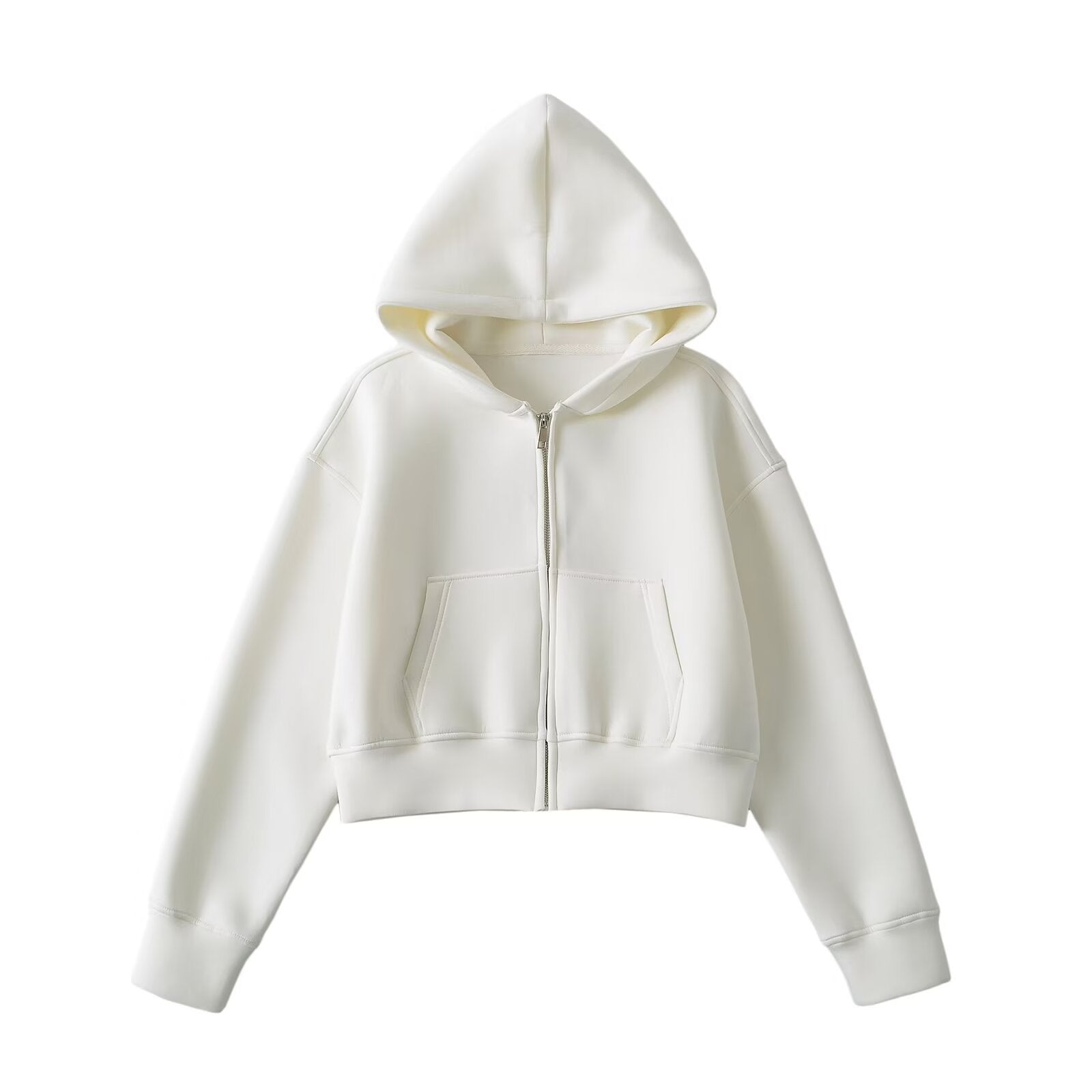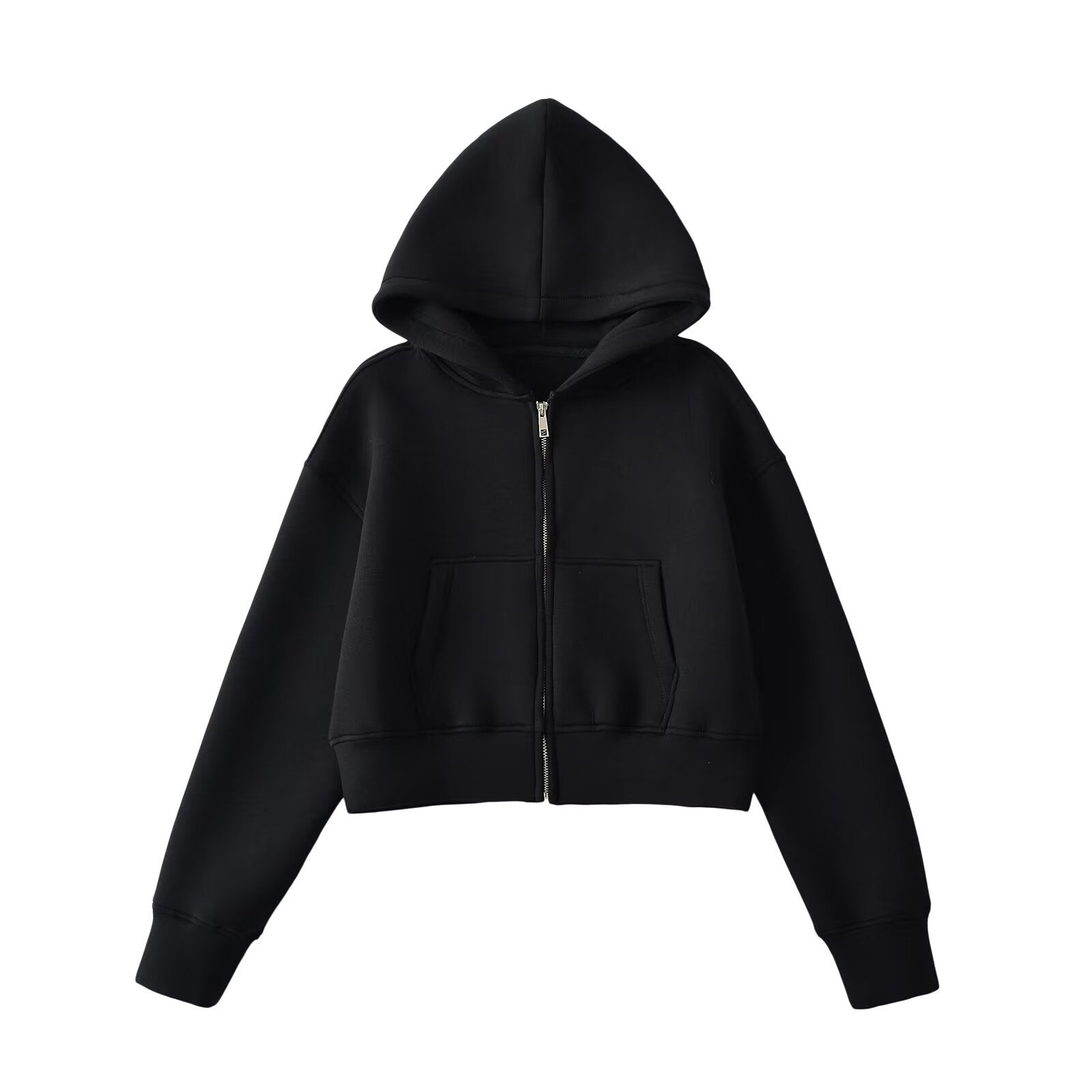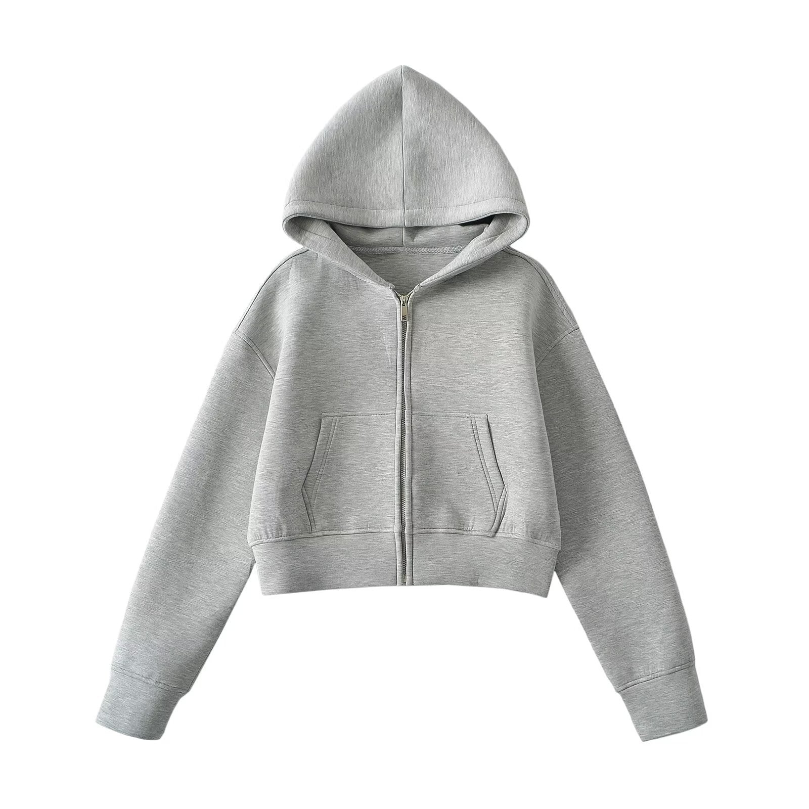 Tilføj denne dames cropped hættejakke med chic lynlås og blødt materiale til din kollektion og sæt stilfulde accenter på dit afslappede look.