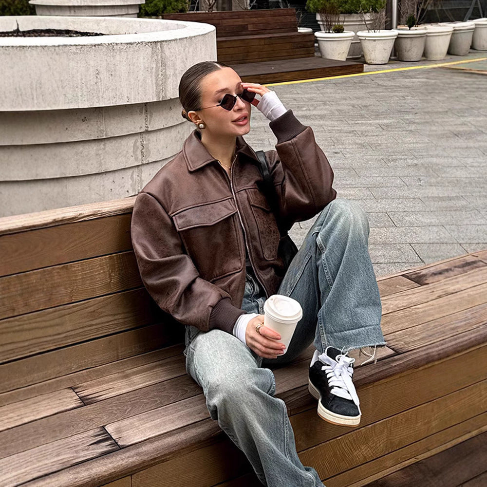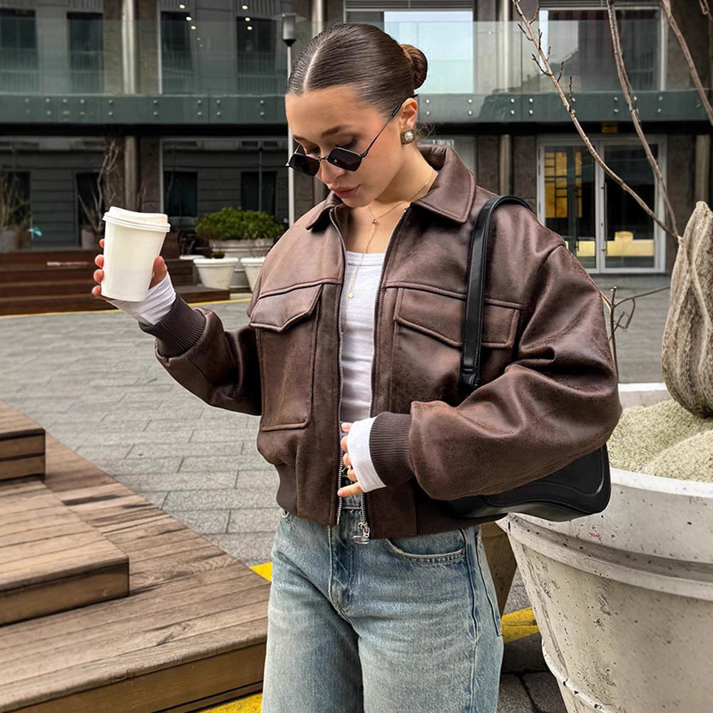Opdag den stilfulde dames cropped kunstlæderjakke fra Stilla, som er designet til et moderne og urbant look. Denne jakke forener funktionalitet med trendy design og er dermed det perfekte beklædningsstykke for modebevidste kvinder.