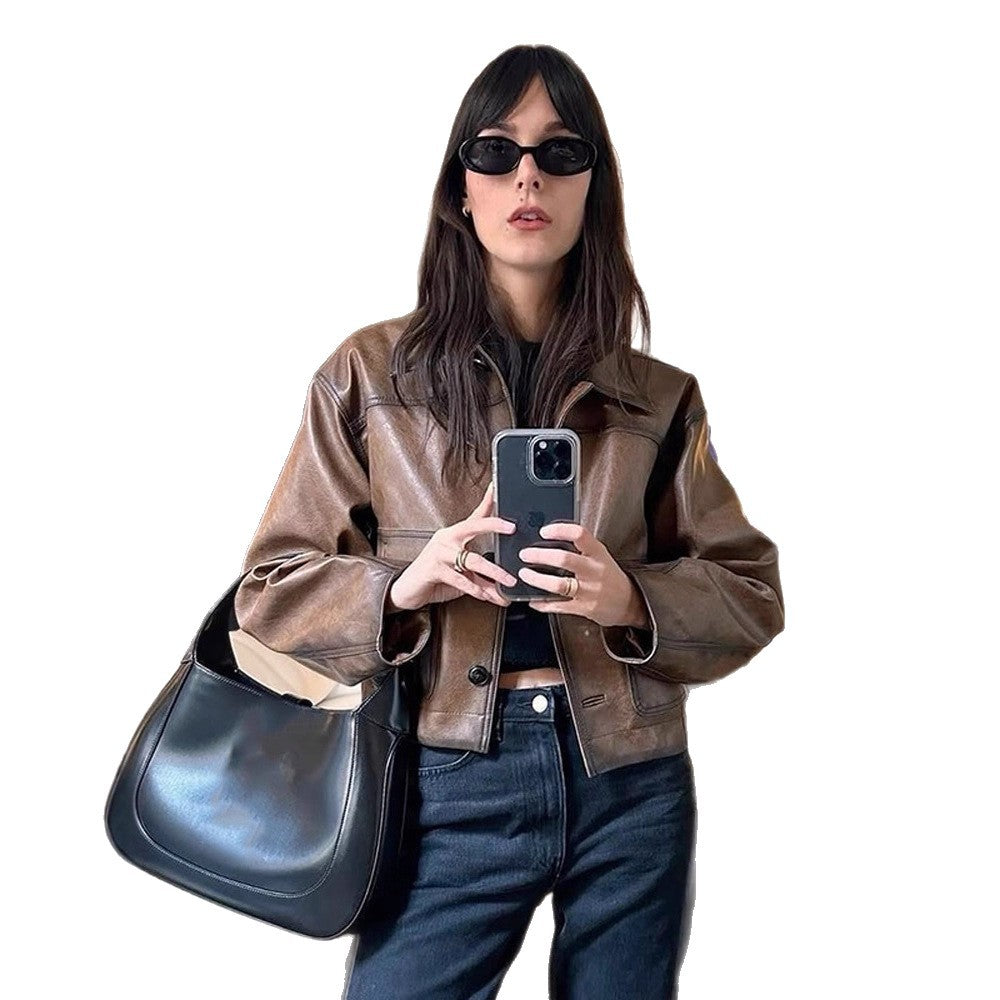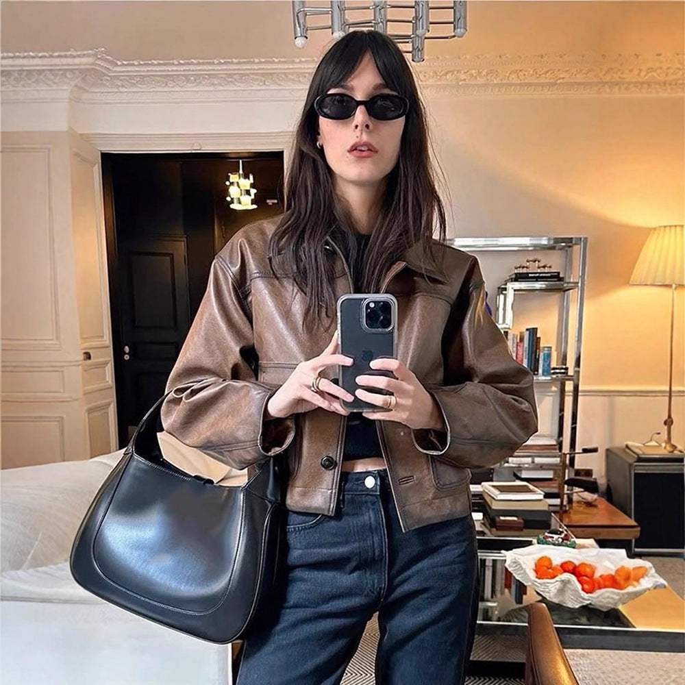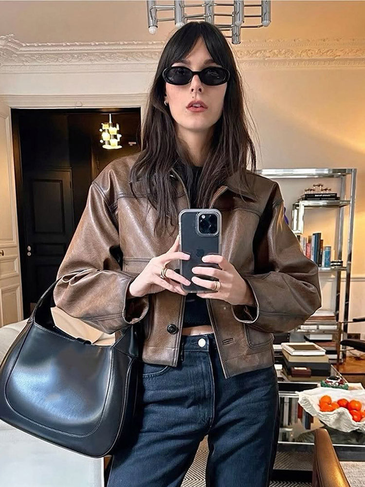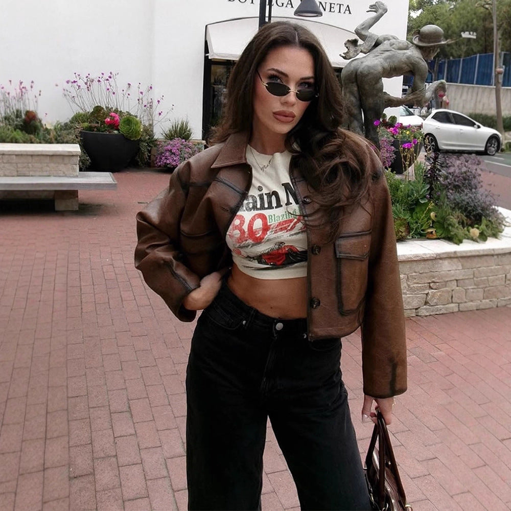 Giv dit look et moderne præg med dames cropped kunstlæderjakken fra Stilla og nyd de beundrende blikke!