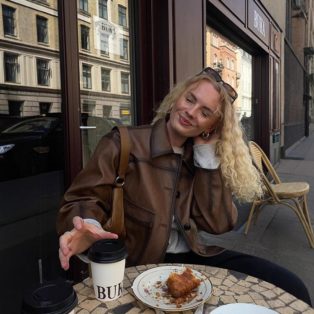 Opdag den stilfulde og alsidige dames cropped kunstlæderjakke fra Stilla, som er et must-have for ethvert moderigtigt garderobe. Denne jakke kombinerer elegant design med førsteklasses komfort og er perfekt til både hverdag og særlige anledninger.