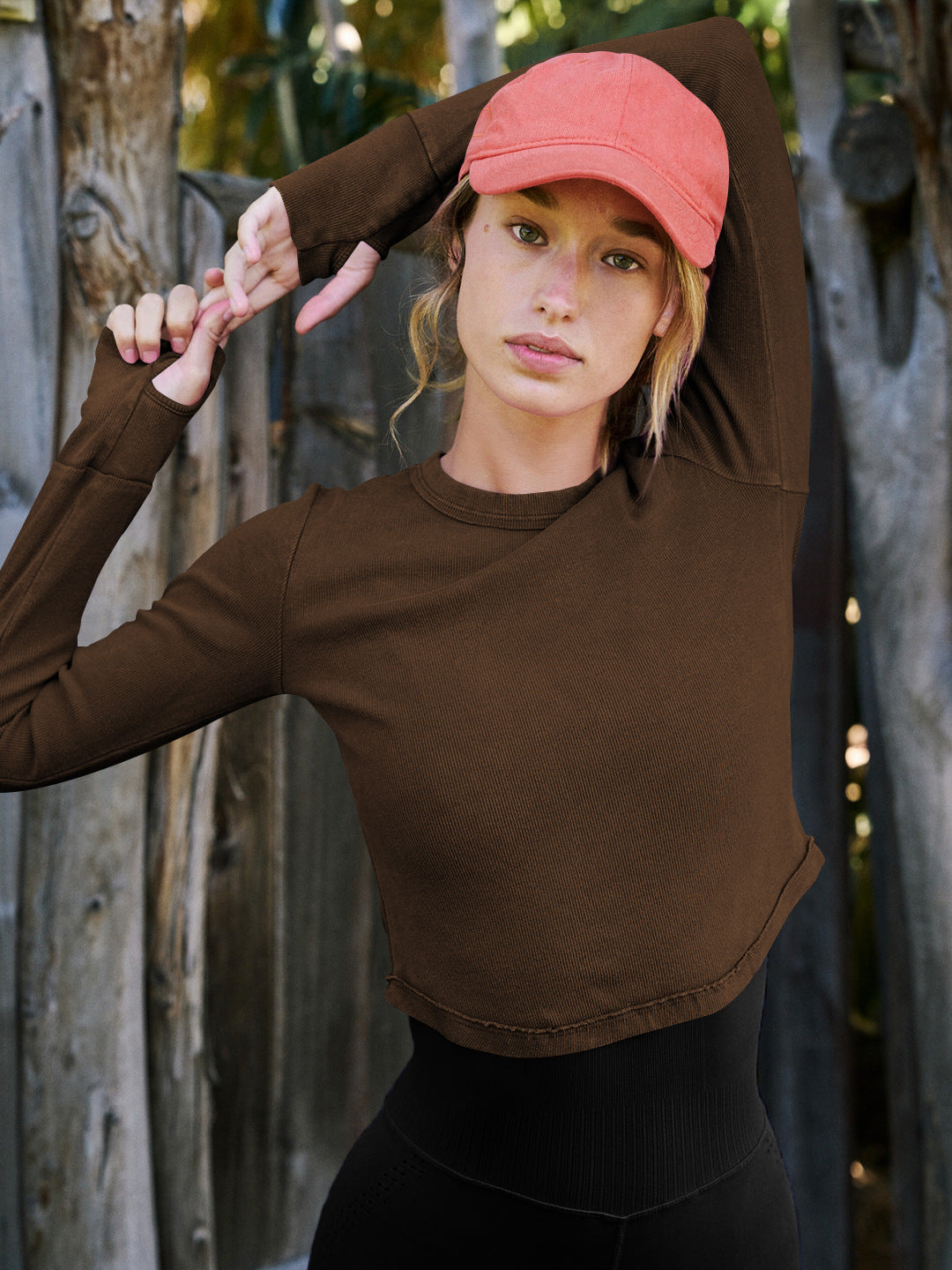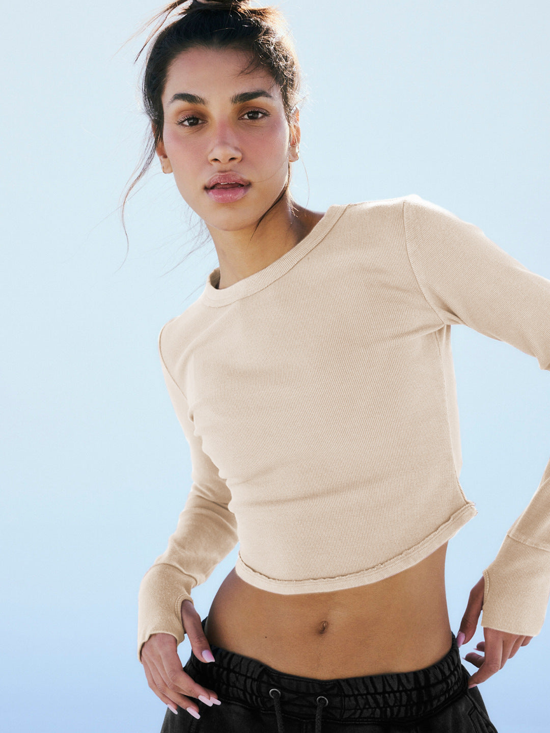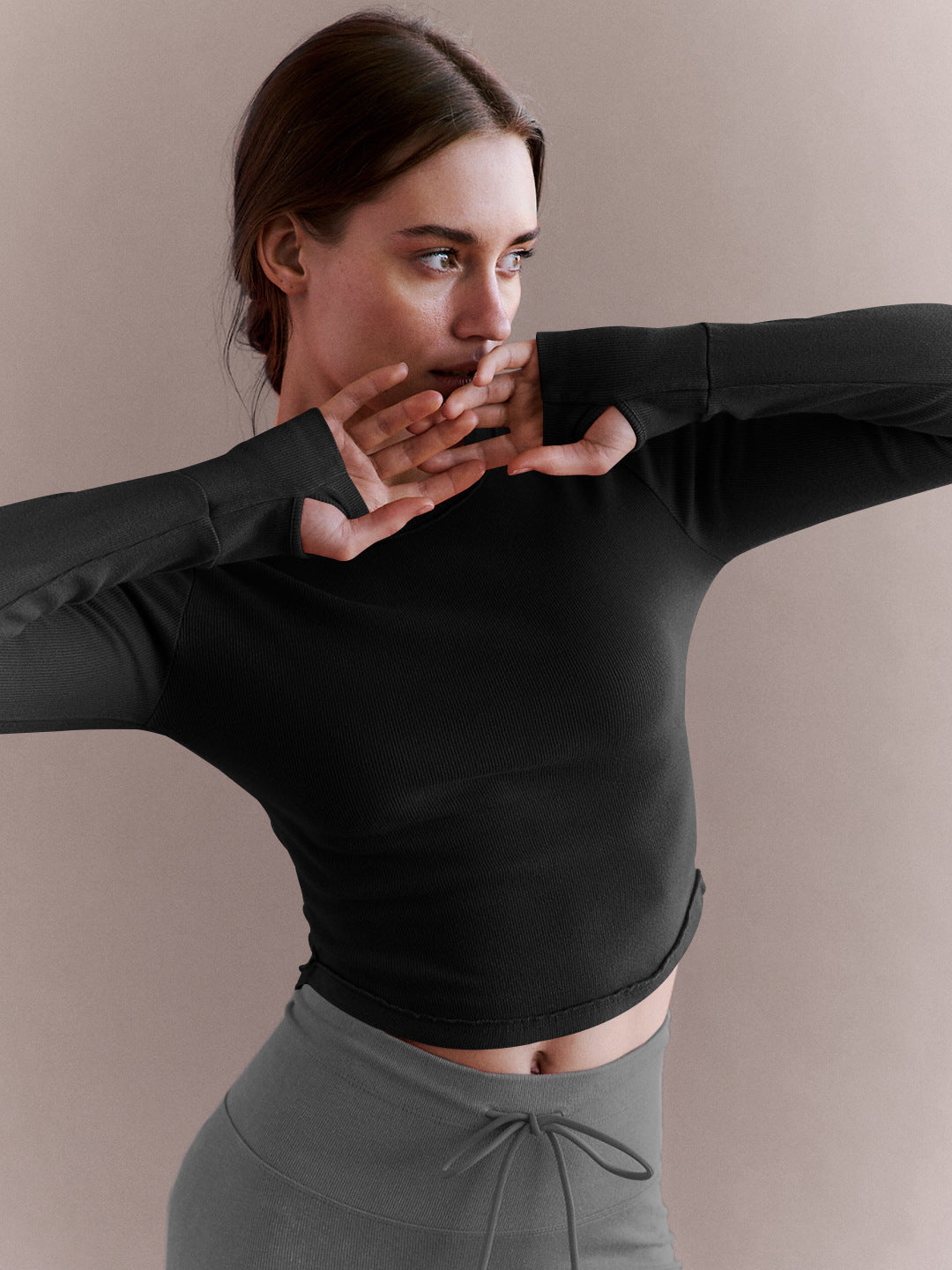 Opdag det stilfulde dames cropped langærmede skjorte fra Stilla, der kombinerer perfekt komfort med et moderigtige design. Den fine ribstruktur giver ikke kun et elegant look, men også en behagelig pasform.