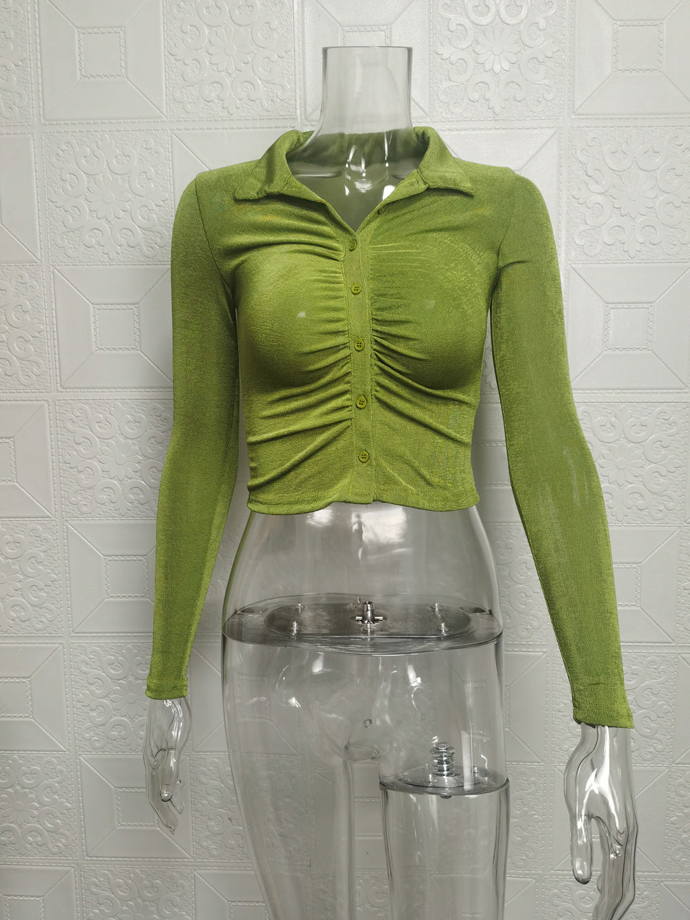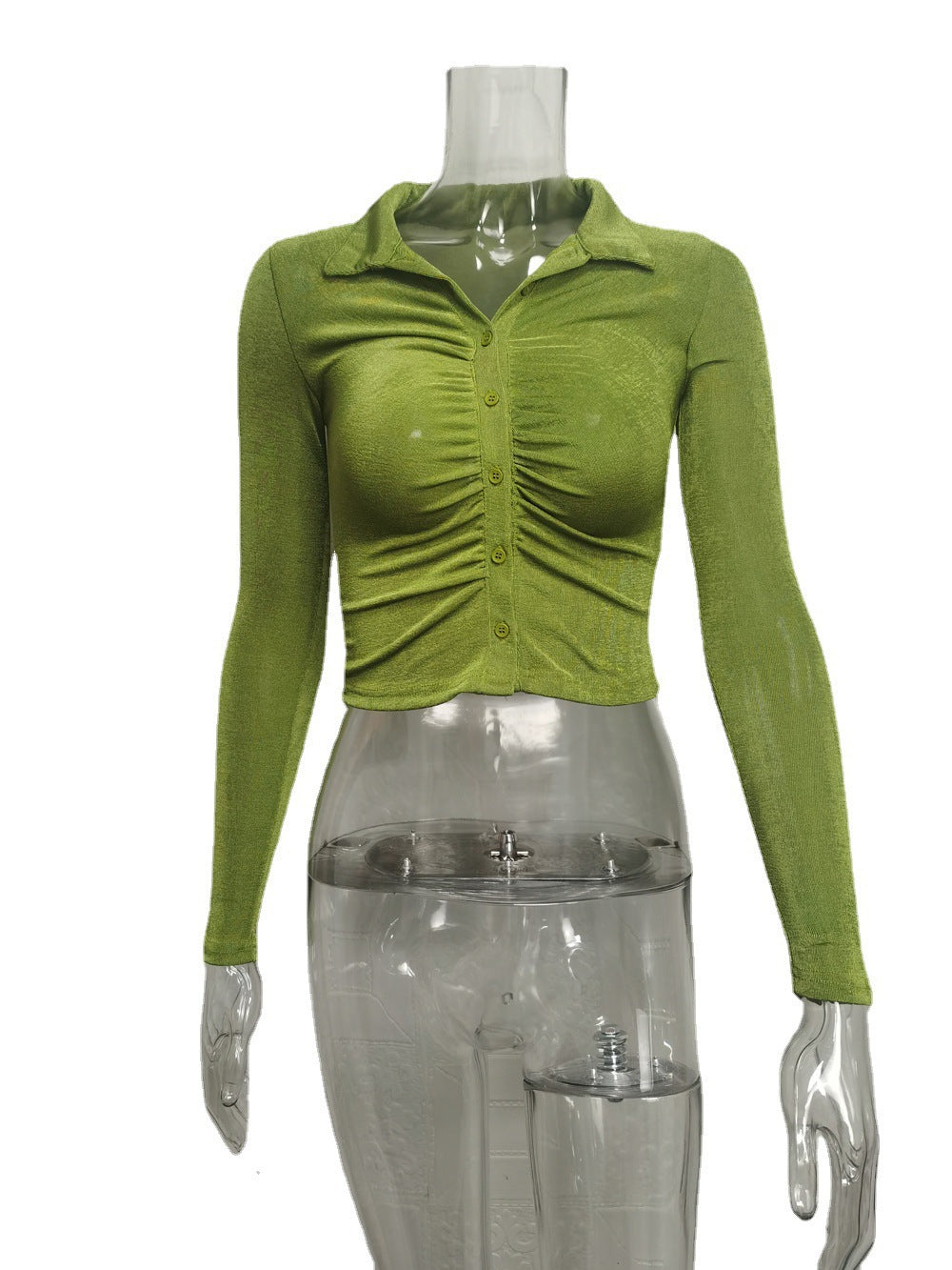 Udforsk vores stilfulde og moderne cropped longsleeve, der er designet med kærlighed til rynkeelementer og en praktisk knaplukning. Dette top er ideelt til trendbevidste damer, der ønsker at tilføre et strejf af elegance og komfort til deres hverdag.