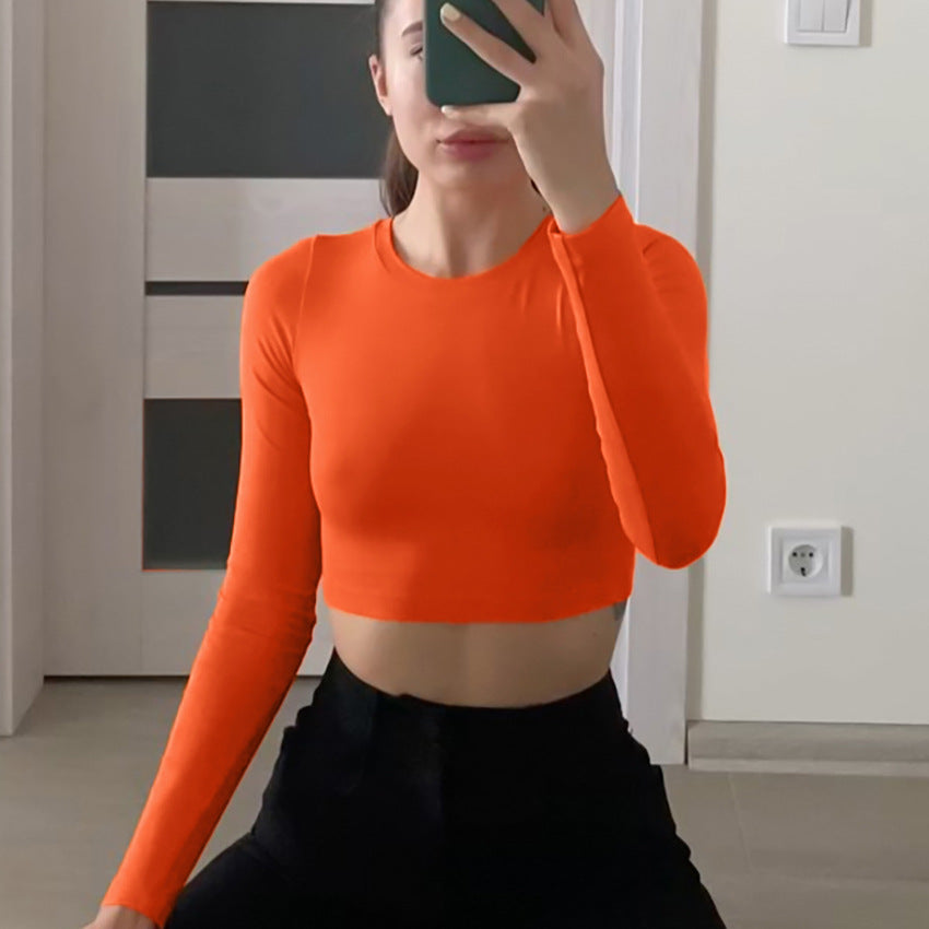Opdag det stilfulde dame cropped langærmede skjorte, som er udstyret med en figursyet snit og elastisk bomuldsmateriale. Dette top kombinerer komfort og modebevidsthed og er perfekt til afslappede anledninger eller elegante outfits.