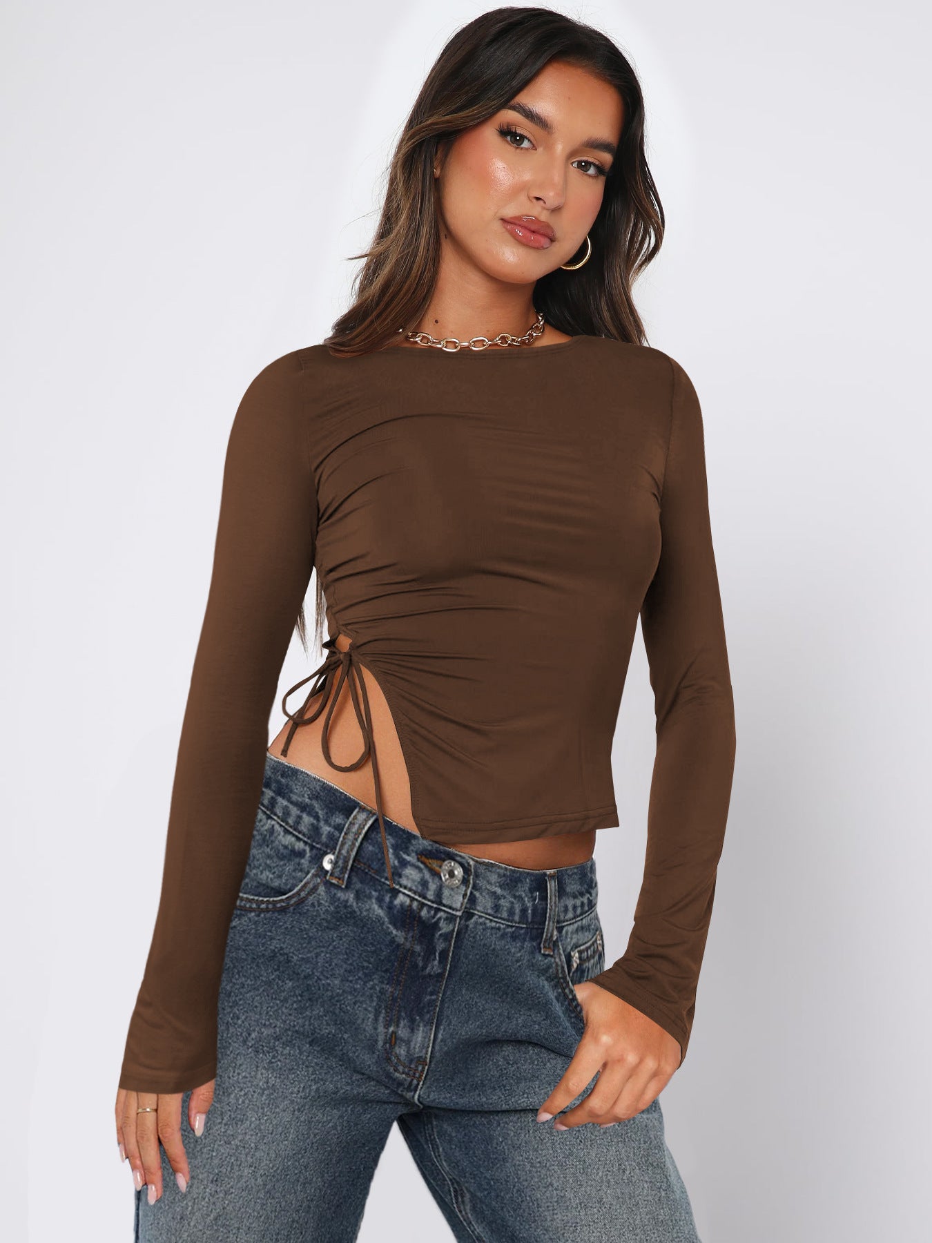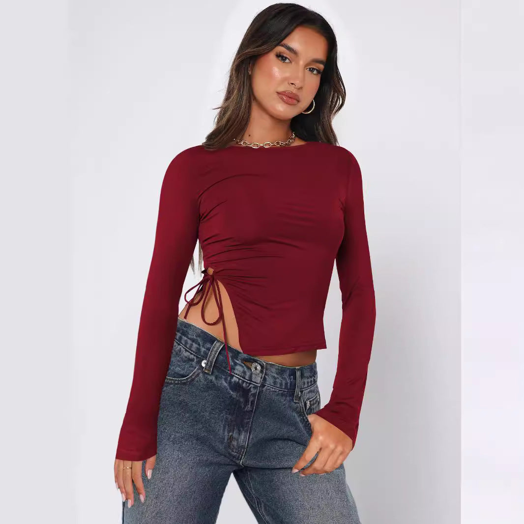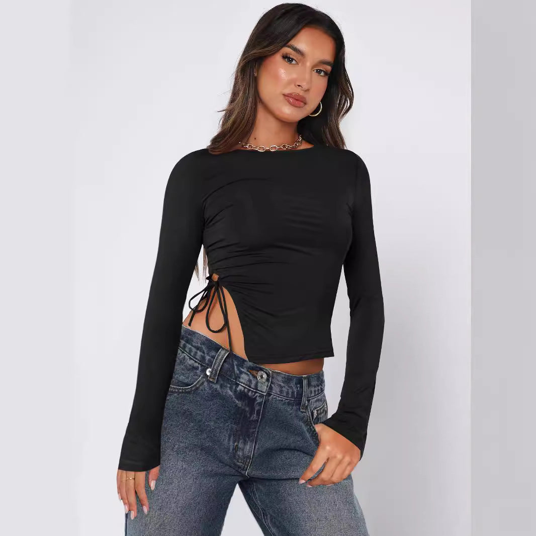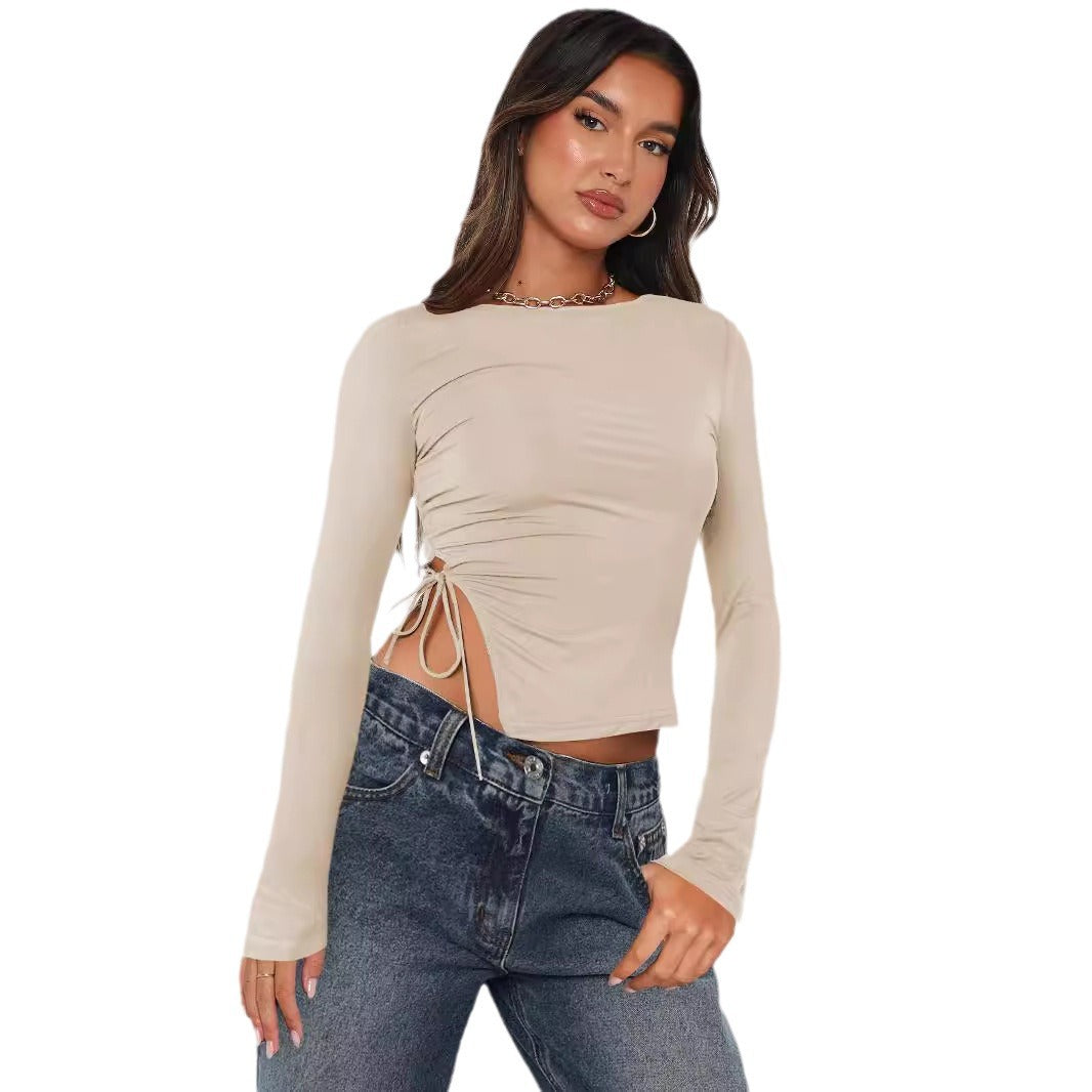 Opdag vores stilfulde dames cropped langærmede skjorte med raffineret rucheffekt og bindedetalje fra Stilla. Dette top kombinerer komfort og moderne design og er det perfekte statement-stykke til enhver garderobe.