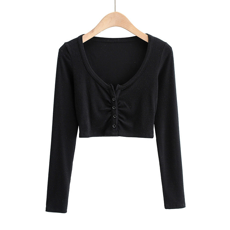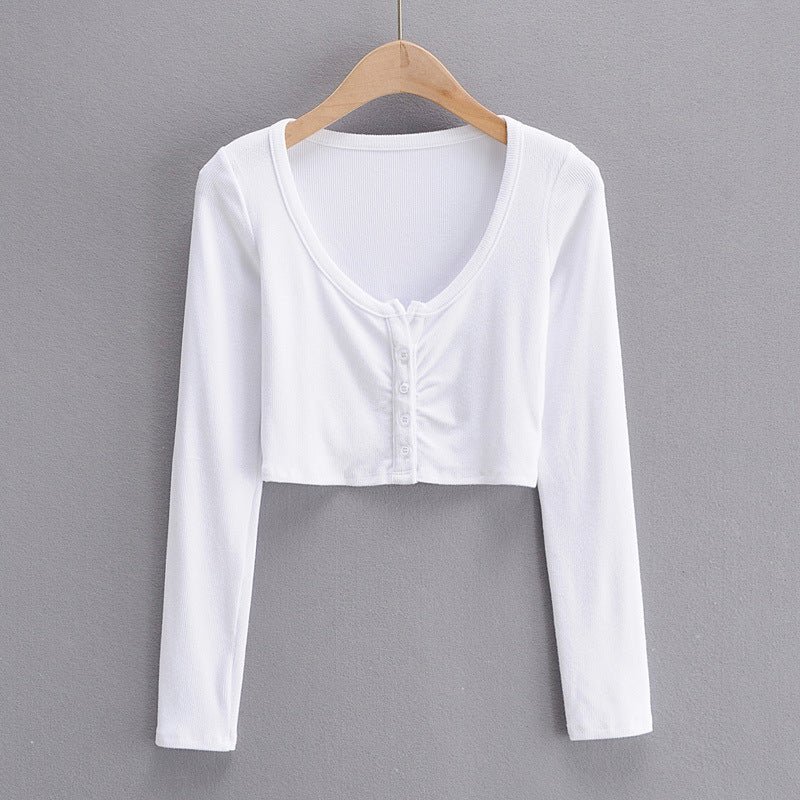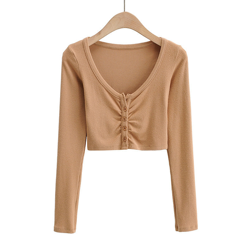 Opdag vores stilfulde dames cropped langærmet skjorte med knapdetaljer, der er ideel til fashionable lag-på-lag looks. Dette top er lavet af et blødt og åndbart materiale, der giver høj bærekomfort hele dagen.