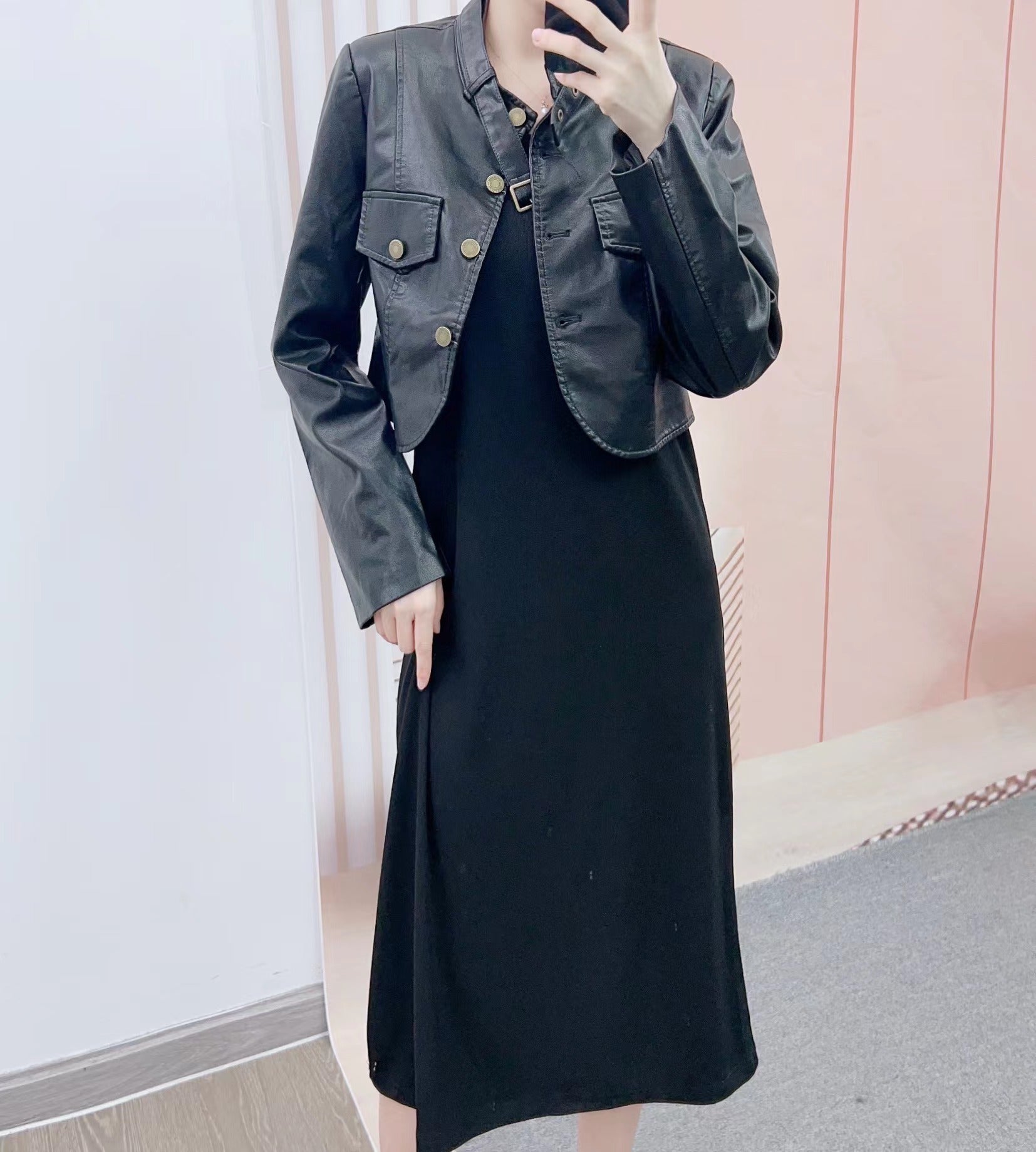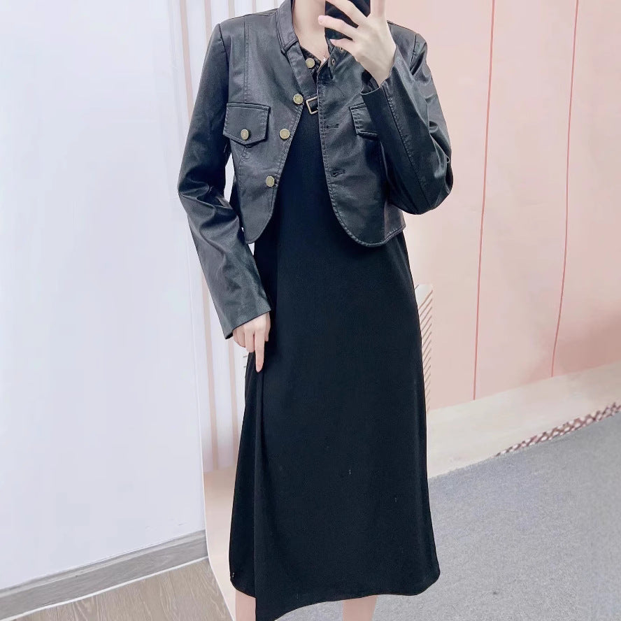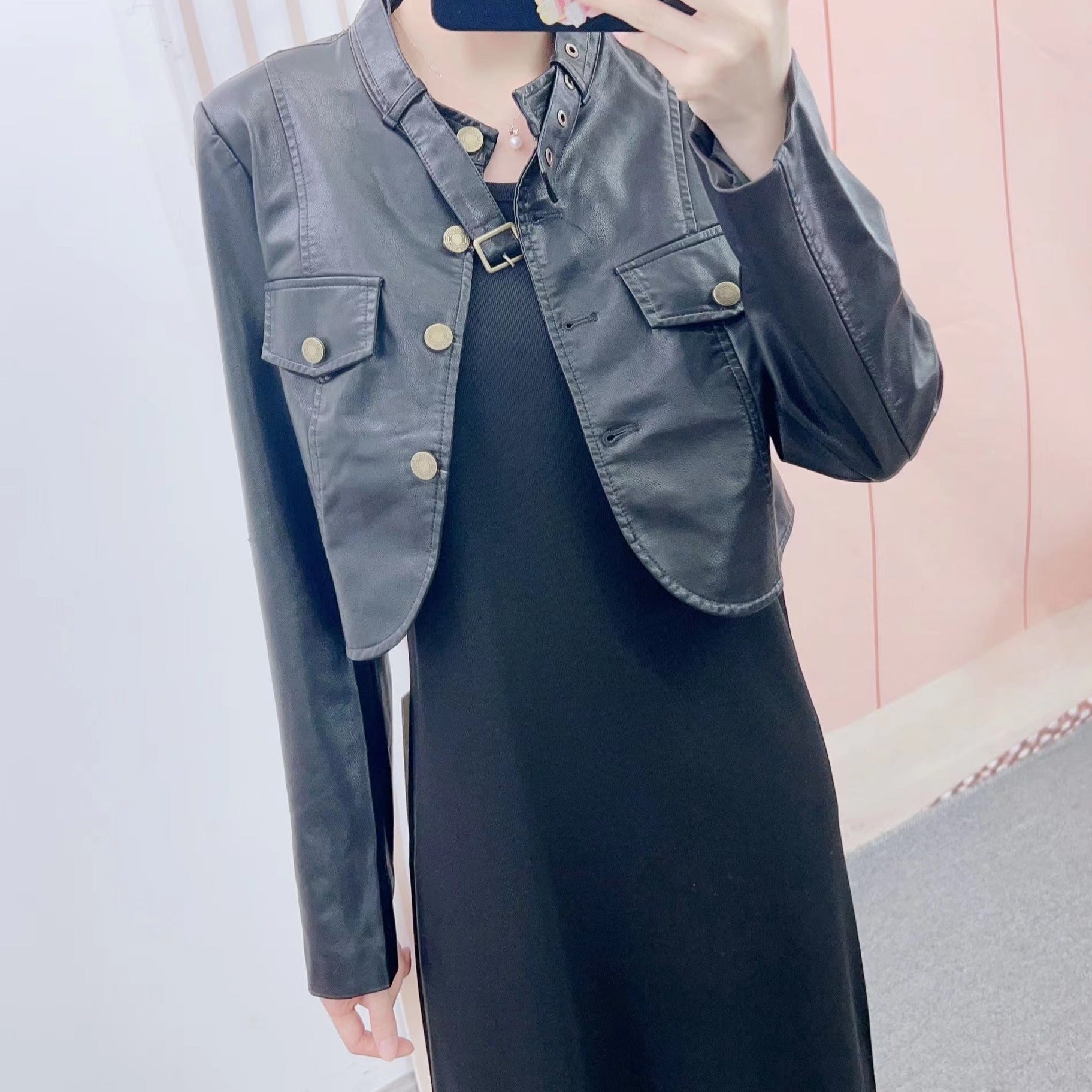 Perfekt kombineret med en kjole eller et trendy par bukser, vil denne jakke hurtigt blive en uundgåelig del af din garderobe. Få fingrene i dames cropped læderjakke med dekorative knapdetaljer fra Stilla og sæt et modeudtalelse!
