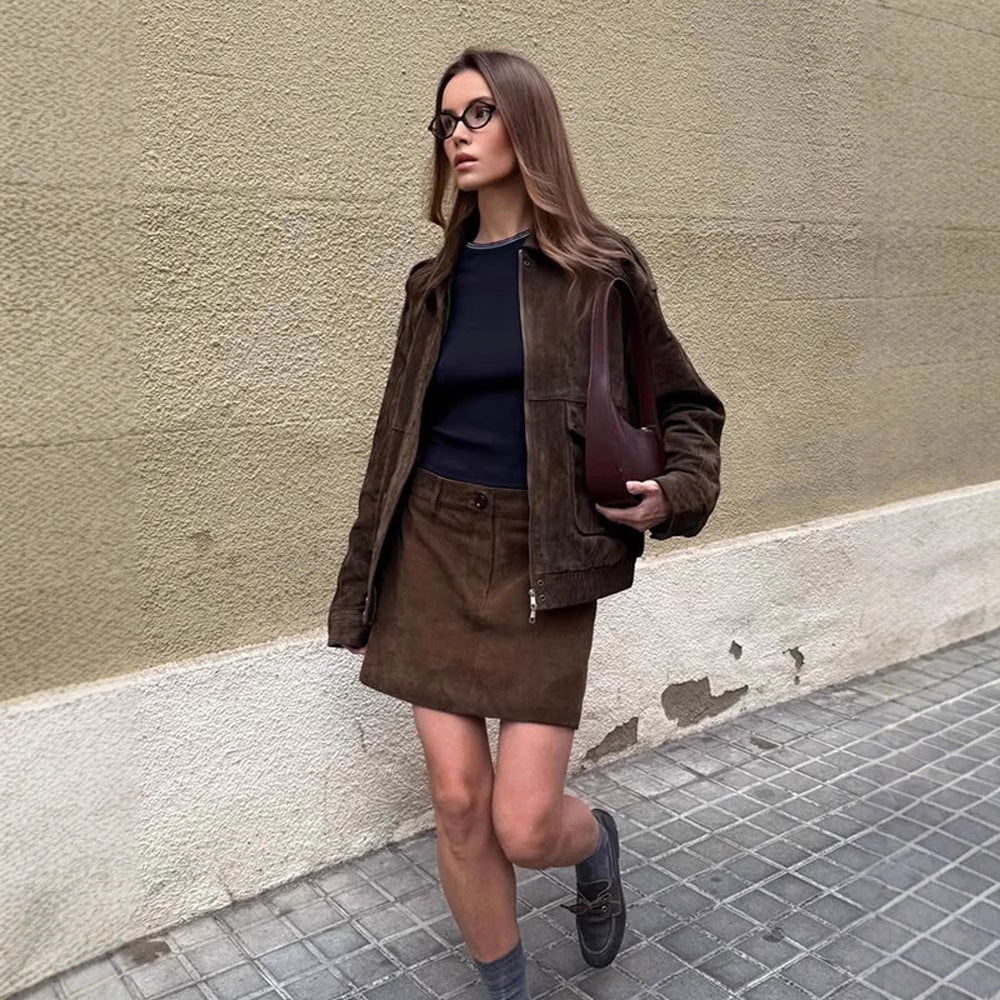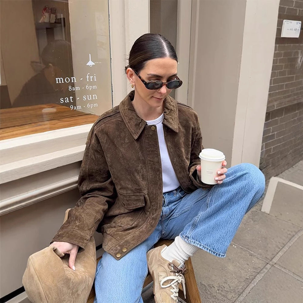 Med denne dames cropped ruskindsjakke sætter du modepræg og føler dig altid godt tilpas. Giv dit outfit et strejf af elegance og stil med Stilla!