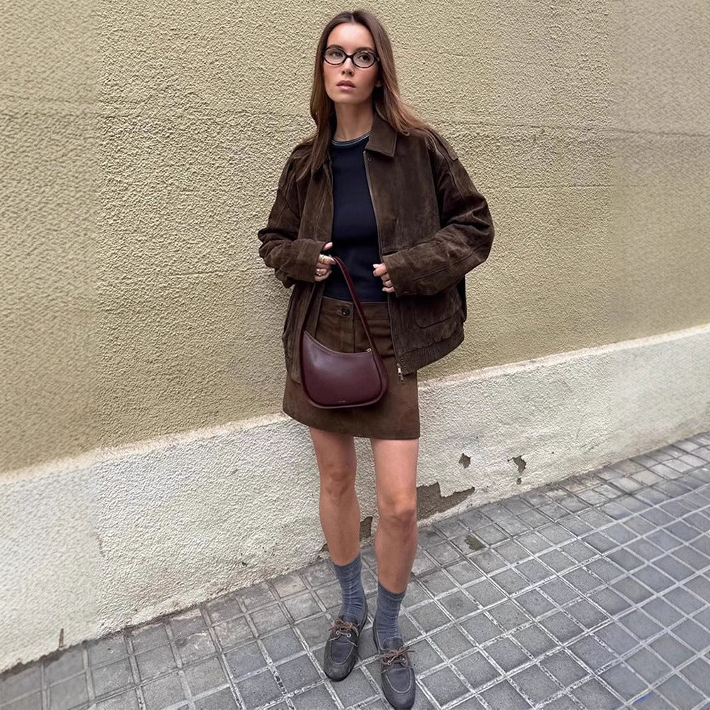 Opdag den perfekte kombination af stil og komfort med vores dames cropped ruskindsjakke. Denne fashionable jakke er lavet af højkvalitets ruskind og tilbyder ikke kun et afslappet look, men også en behagelig pasform til enhver lejlighed.