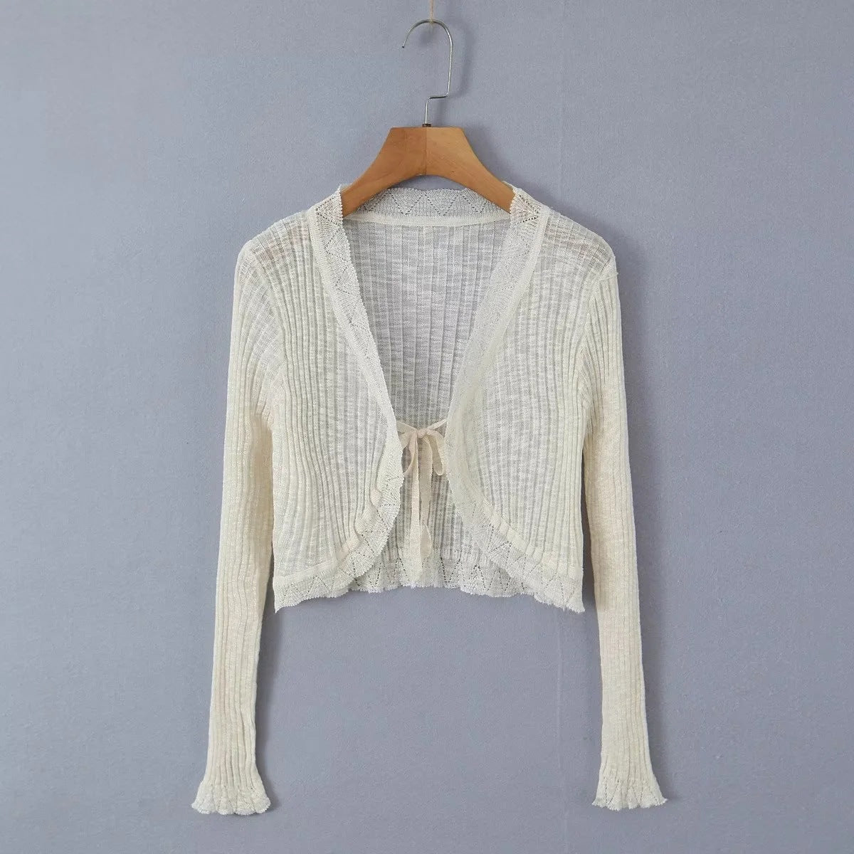 Oplev vores elegante dames cropped strikketrøje, der er perfekt til enhver lejlighed. Denne stilfulde jakke imponerer med sit innovative ribdesign og de fine spidse accenter, som giver et feminint touch. Ideel til overgangsperioder, giver den ikke kun varme, men også mode charme.