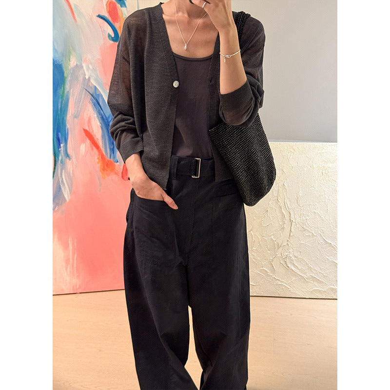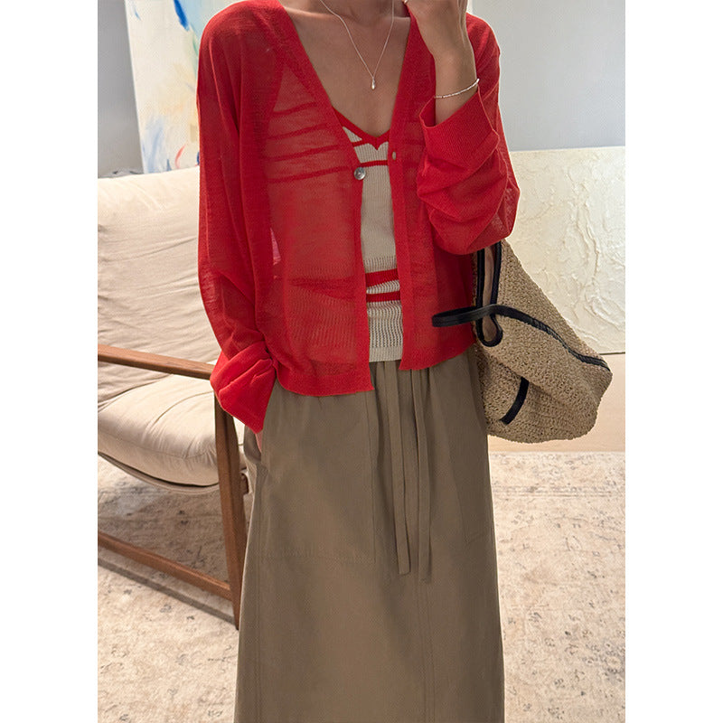 Opdag den stilfulde og komfortable cropped strikjakke fra Stilla, perfekt til overgangsperioden. Denne jakke har en moderne V-halsudskæring og elegante knapdetaljer, der giver dit outfit et elegant præg.