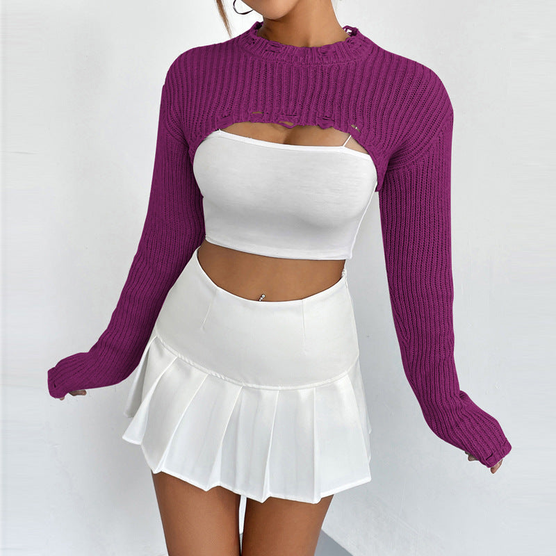 Fuldfør din garderobe med denne unikke damet cropped strikpullover og giv et modeudtryk!