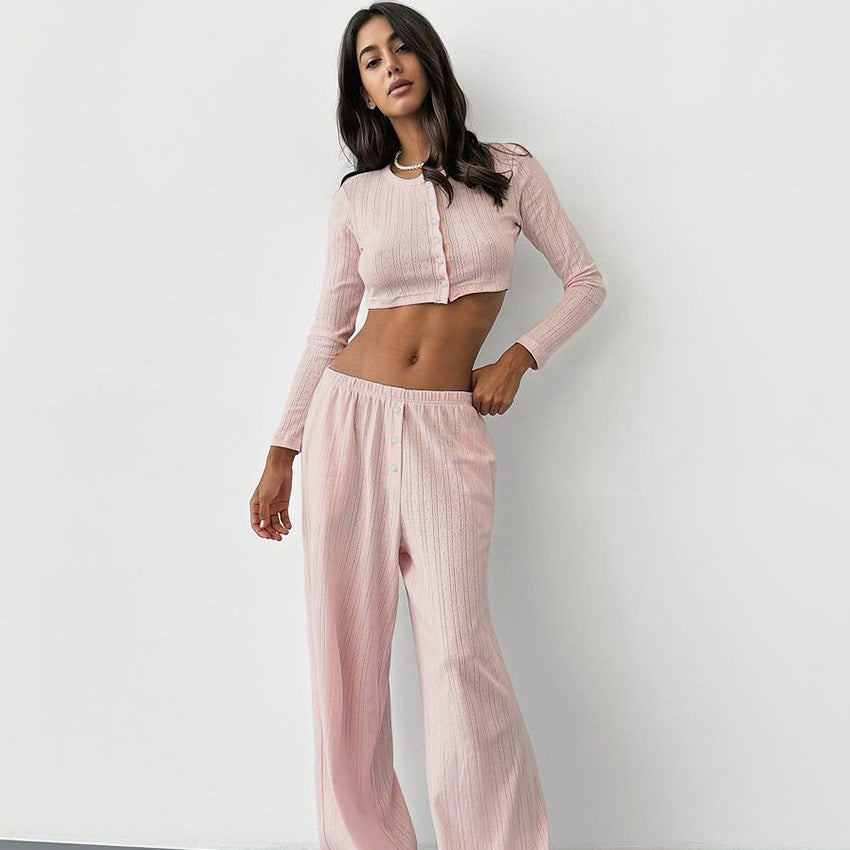 Opdag vores stilfulde Cropped Pullover og bred bukse sæt, der forener komfort og elegance. Dette sæt består af en moderigtig cropped pullover med fine ribdetaljer og et matchende, bredt par bukser, der giver ultimativ frihed. Ideelt til afslappede dage derhjemme eller uformelle udflugter.