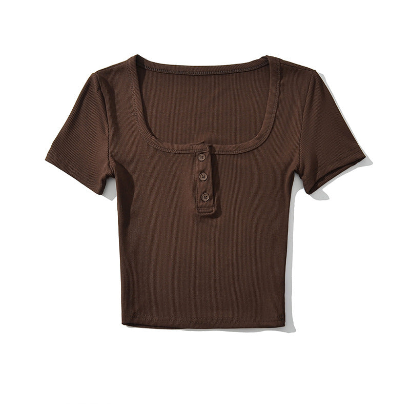 Opdag vores stilfulde dame cropped T-shirt med firkantet udskæring og knapdetaljer fra Stilla. Dette top kombinerer afslappet komfort med moderigtig stil, ideel til forskellige anledninger.