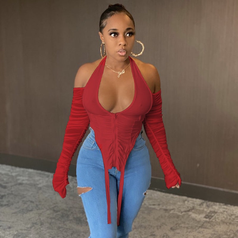 Opdag den stilfulde dames Cut-Out bluse med rynker og lange ærmer, der forener både komfort og elegance. Dette eksklusive top er ideelt til særlige lejligheder eller til hverdagen, når du ønsker at tilføre et strejf af glamour.