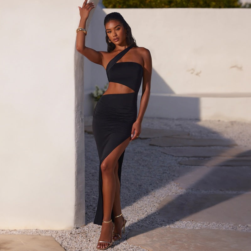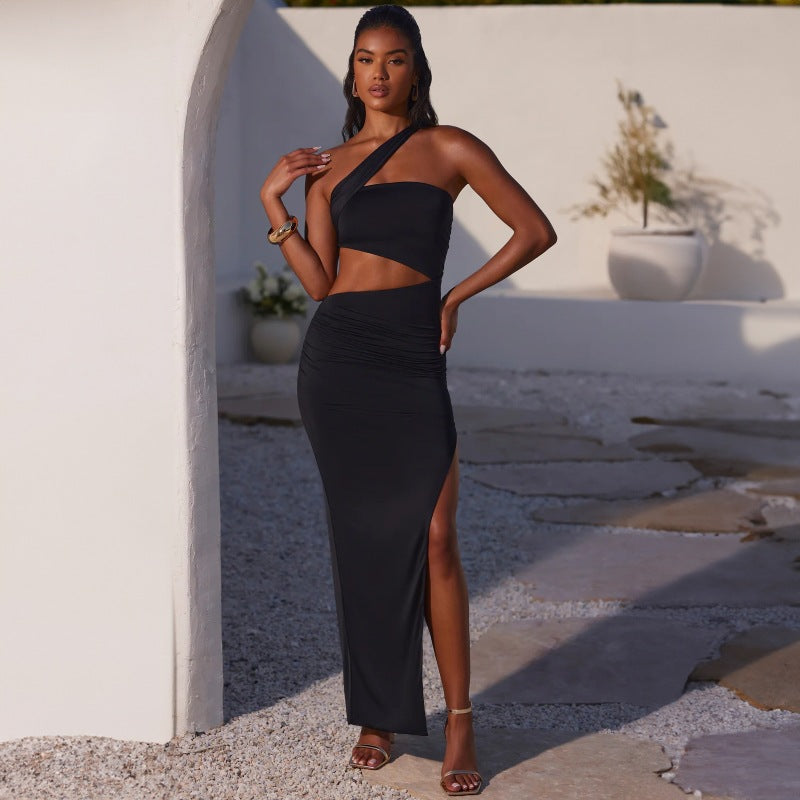 Vores dames Cut-Out maxikjole med asymmetrisk design og samlet overdel giver dig den perfekte blanding af elegance og moderne stil. Ideel til særlige lejligheder eller en aften i byen, vil denne kjole tiltrække alles opmærksomhed.