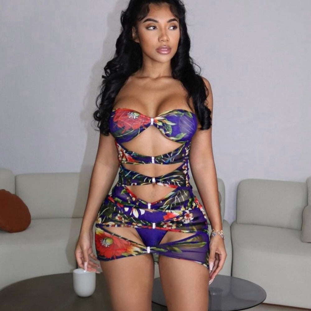 Denne stilfulde Cut-Out minikjole er et perfekt højdepunkt til din aften garderobe. Den forener modebevidst elegance med et forførende design. Den blomstrede optik bringer et strejf af sommer til enhver begivenhed og kan let kombineres med forskellige accessories.