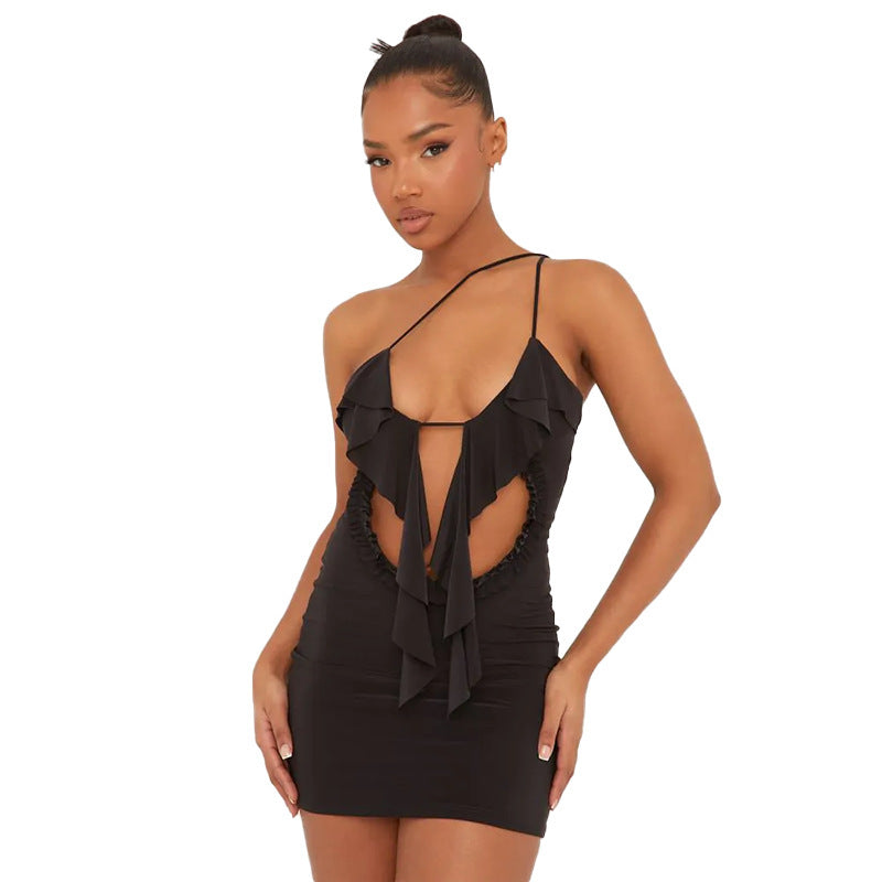 Opdag vores dames Cut-Out minikjole med flydende flæsedesign og asymmetrisk stropper, der er perfekt til særlige anledninger og sommerfester. Denne kjole kombinerer elegant raffinement med moderne Accenter og sikrer, at du står i centrum for opmærksomheden.
