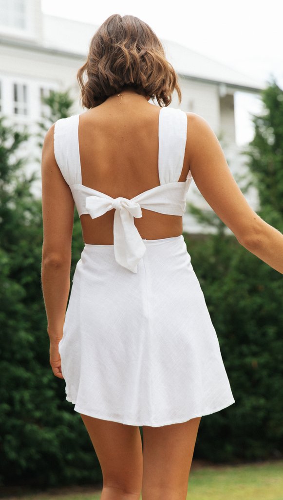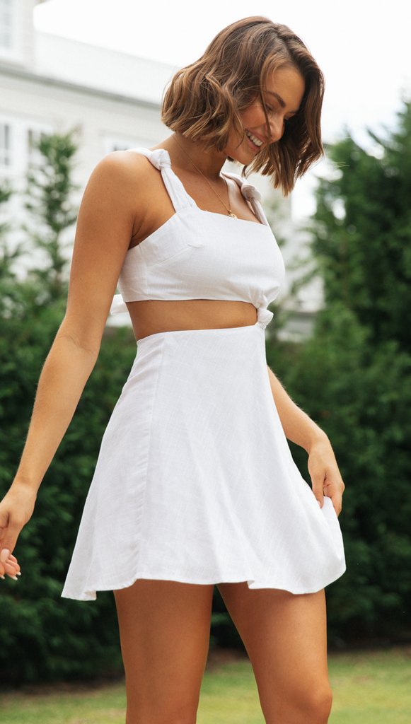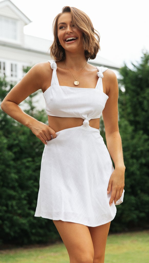 Oplev det perfekte sommeroutfit med vores dames Cut-Out minikjole med legende knuder fra Stilla. Denne trendy kjole kombinerer komfort med et strejf af elegance og er det ideelle valg til solrige dage og særlige lejligheder.