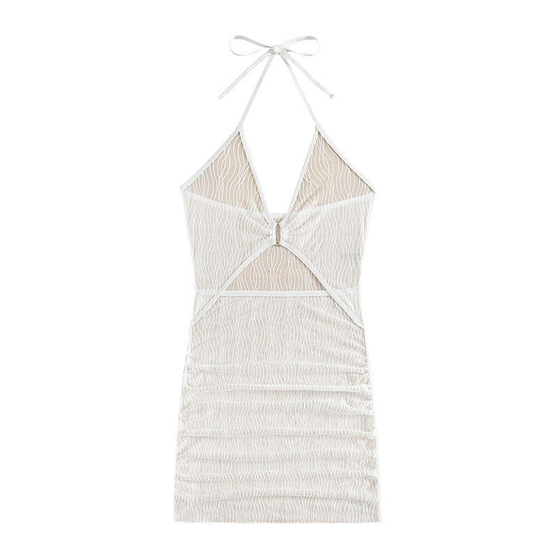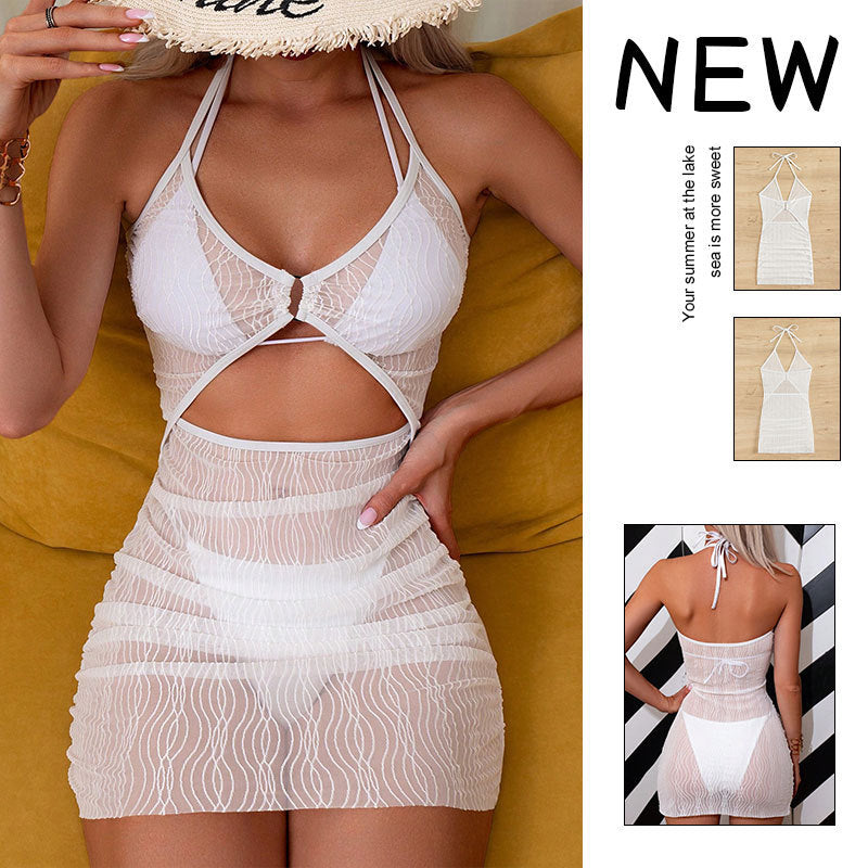Opdag vores unikke dames Cut-Out strandkjole med et raffineret omslag design og gennemsigtigt net. Denne fantastiske kjole forener elegance og komfort, ideelt til solrige dage på stranden eller afslappede aftenbegivenheder.