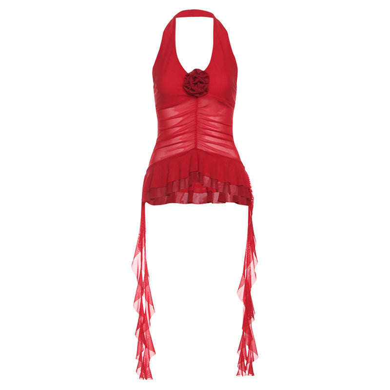 Oplev vores damers dekorative top med flæsedesign og blomsteraccenter, der er perfekt til særlige lejligheder. Denne trendy top kombinerer elegance med et strejf af legesyge.