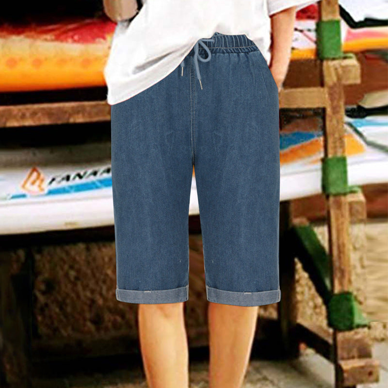 Opdag de perfekte denim-bukser til sommeren! Vores dames denim-bukser med justerbar snor fremhæver deres afslappede, men stilfulde look og giver dig den ultimative komfort til enhver lejlighed.