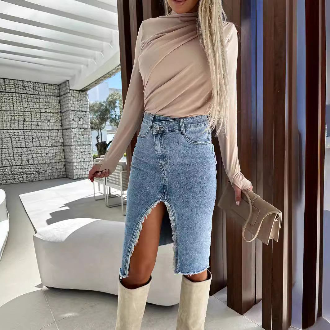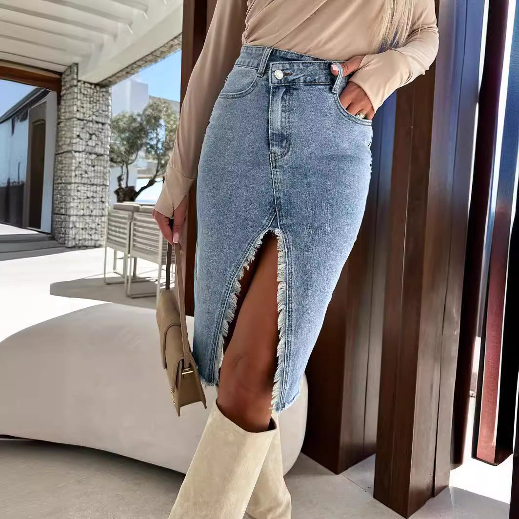 Denne dames denim-nederdel er den perfekte tilføjelse til din garderobe og sikrer en fashionabel fremtoning. Giv dig selv denne alsidige nederdel og sæt et statement i dit outfit!