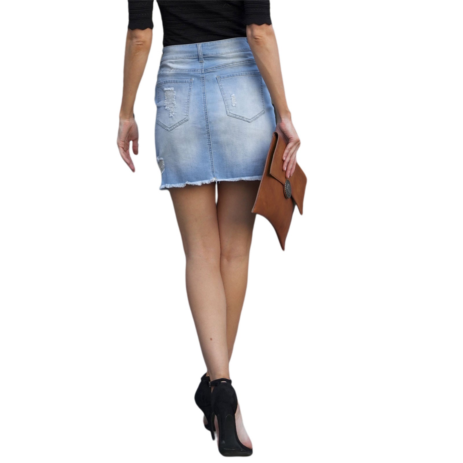 Opdag den stilfulde dames denim-nederdel med trendy slidte detaljer fra Stilla. Denne nederdel forener afslappet chic med et moderne look og er det perfekte beklædningsstykke til enhver lejlighed.