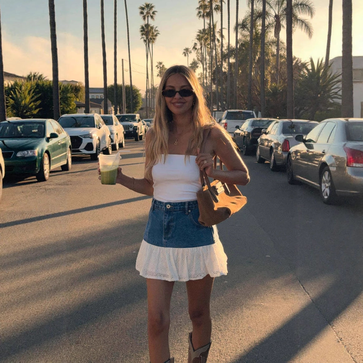 Dames denim-nederdelen med flæsekant og taljeret design fra Stilla er det perfekte tøj til modebevidste kvinder, der værdsætter stil og komfort.