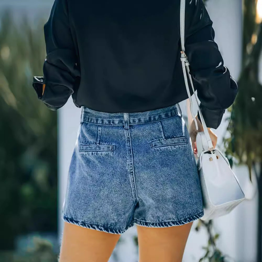 Disse dames denim shorts er den perfekte tilføjelse til din sommergarderobe. Med en høj talje og tætsiddende snit giver de en flatterende silhuet og maksimal komfort.
