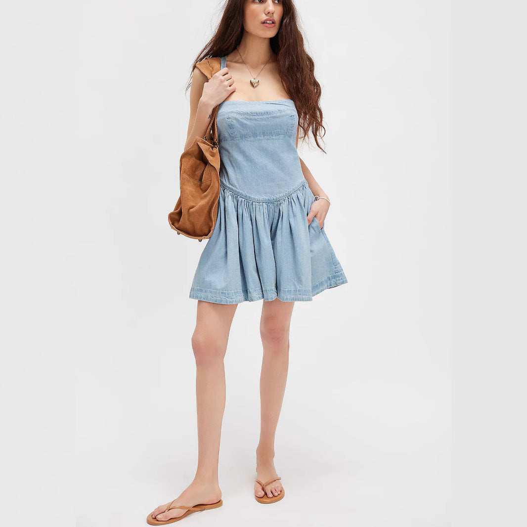 Oplev den perfekte kombination af komfort og stil med vores dame denim sommerkjole. Denne kjole er ikke kun ideel til varme sommerdage, men også et ægte blikfang til enhver lejlighed.