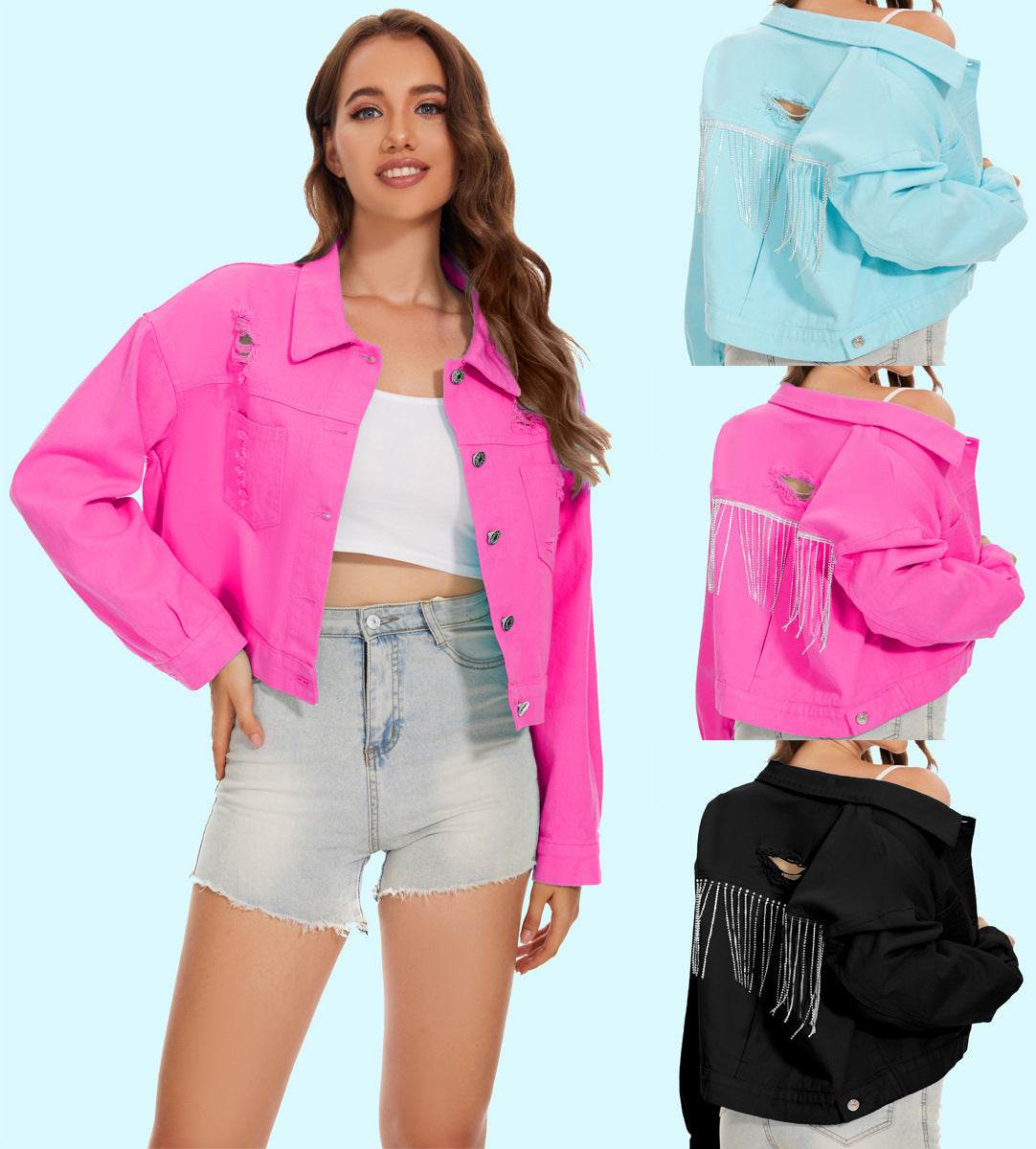 Opdag den trendy dame denimjakke fra Stilla, som imponerer med et unikt frynse-design og tiltalende dekorative elementer. Denne jakke er den perfekte modetrend til sæsonen og kan kombineres på mange måder.