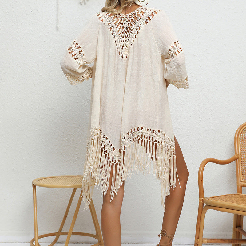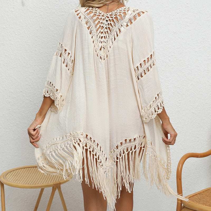 Denne luksuriøse dames design strandomslag fra Stilla er det perfekte tilbehør til solrige dage på stranden eller afslappende timer ved poolen. Med sit elegante hæklede mønster og de legesyge frynser sikrer det et stilfuldt udseende.