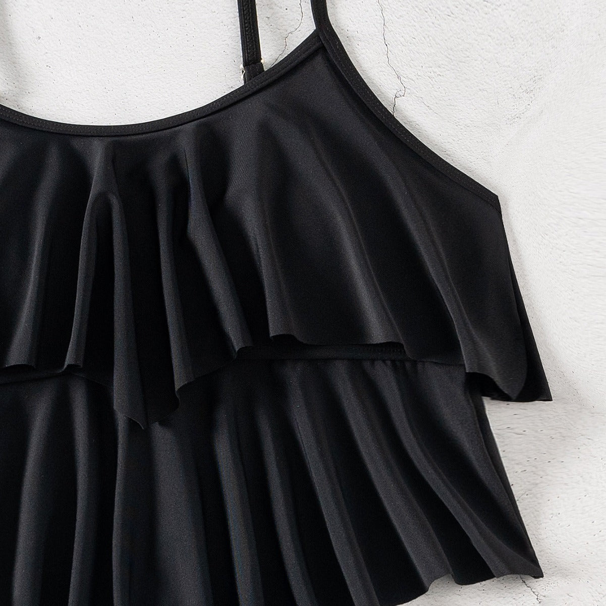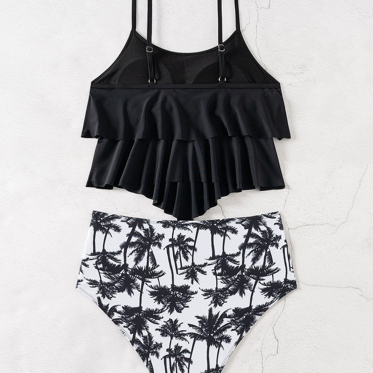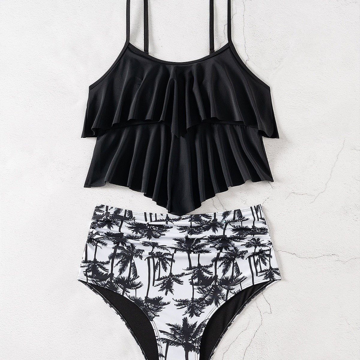 Vores dames designer badetøj med flæser og palmtrykt er det perfekte outfit til en dag på stranden eller ved poolen. Denne badedragt kombinerer stilfuldt design med maksimal komfort.