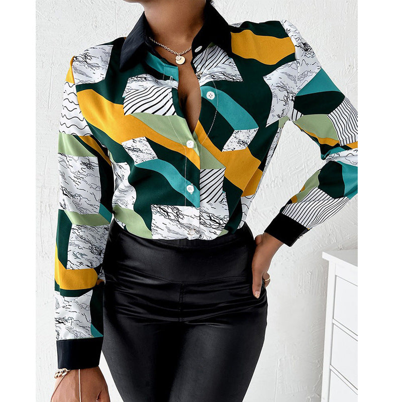Opdag den eksquisite Dame Designer Bluse med spændende grafisk mønster fra Stilla, der nemt løfter din stil til et nyt niveau. Denne bluse forener moderne design med tidløs elegance og er perfekt til forskellige anledninger, fra kontoret til fritid.