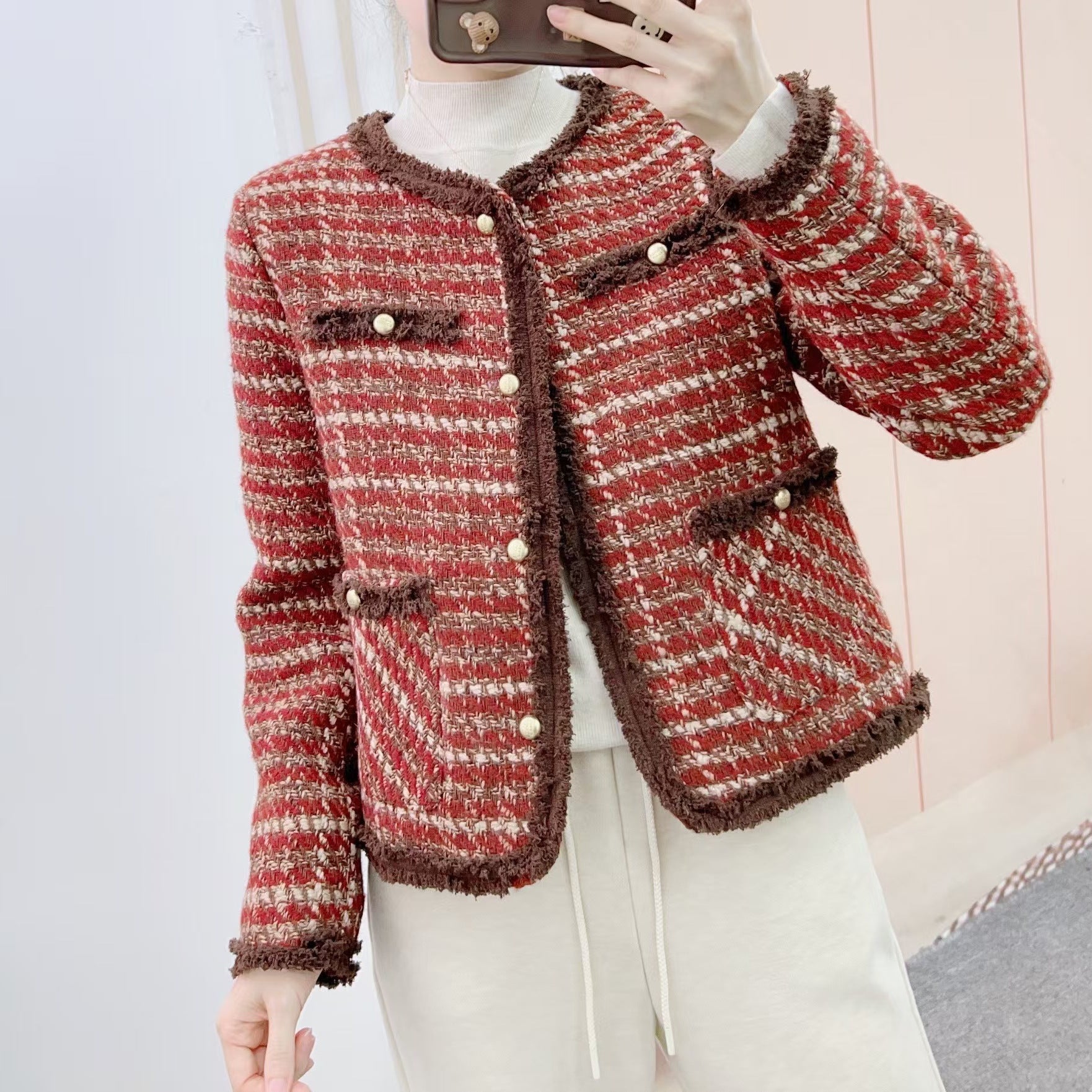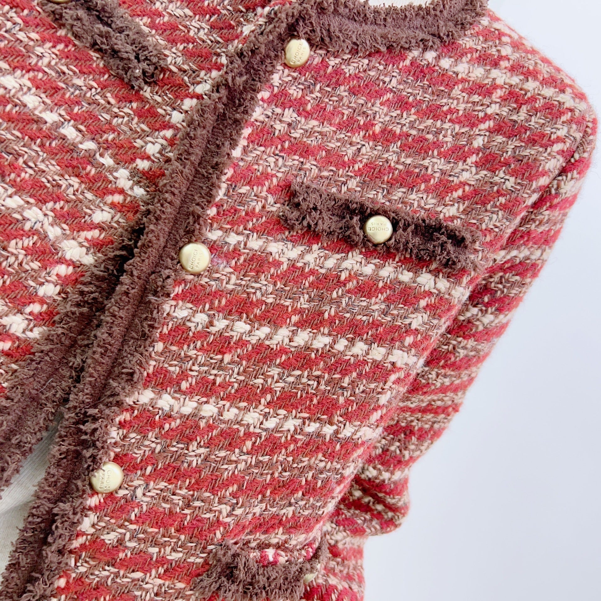 Opdag den eksklusive dame designer bouclé-jakke, der skiller sig ud med sit raffinerede design og de kvalitetsmaterialer. Denne stilfulde jakke er lavet af det fineste bouclé-stof, som ikke kun er moderigtigt, men også behageligt at have på. Med sine elegante perlebesatte knapdetaljer og den unikke frynseafslutning bliver den den ideelle følgesvend til enhver festlig lejlighed.