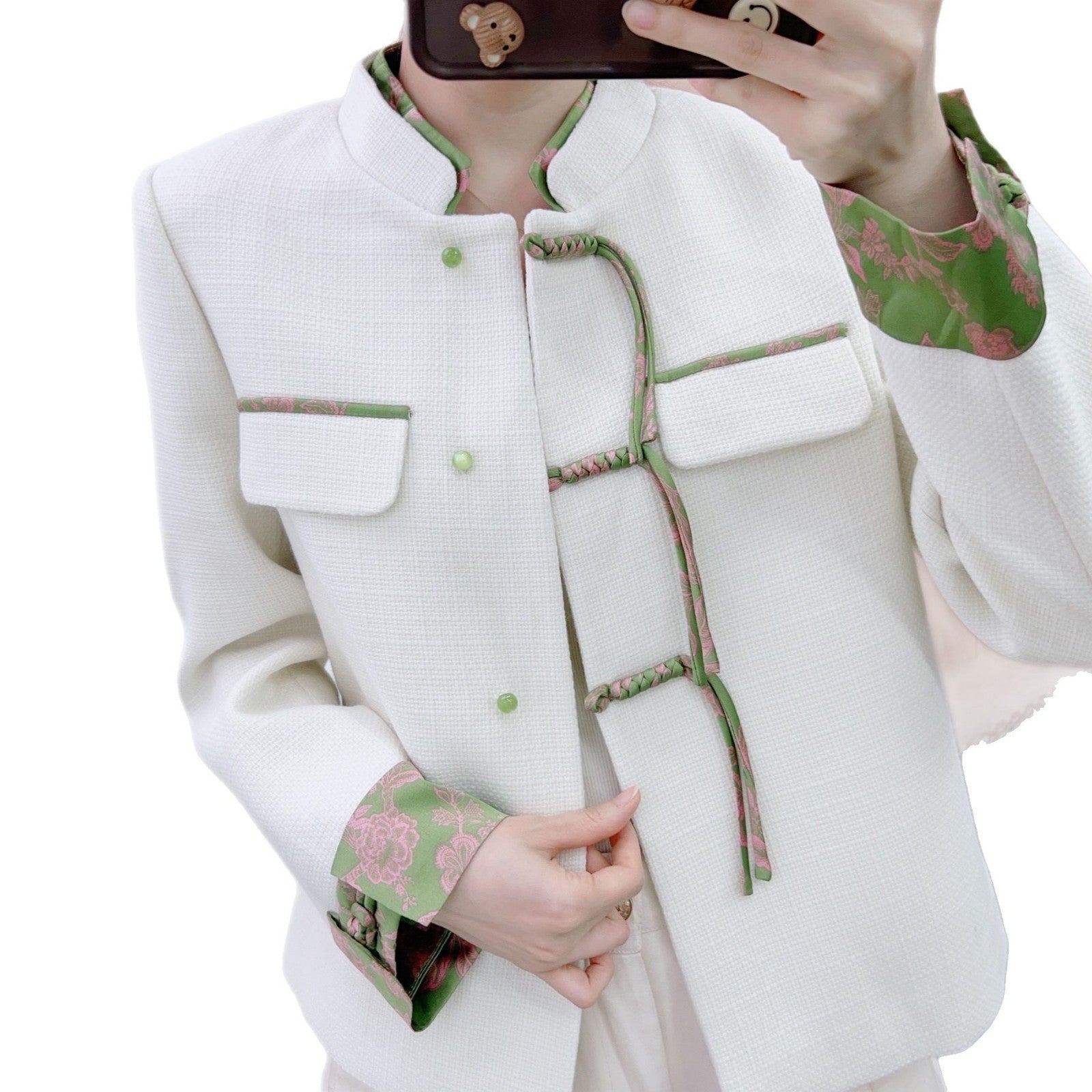 Opdag den tidløse elegance af vores dame designerjakke med elegant ståkrave og blomsterdetaljer fra Stilla. Dette tøjstykke forener modedesign med høj komfort og er perfekt til forskellige anledninger.