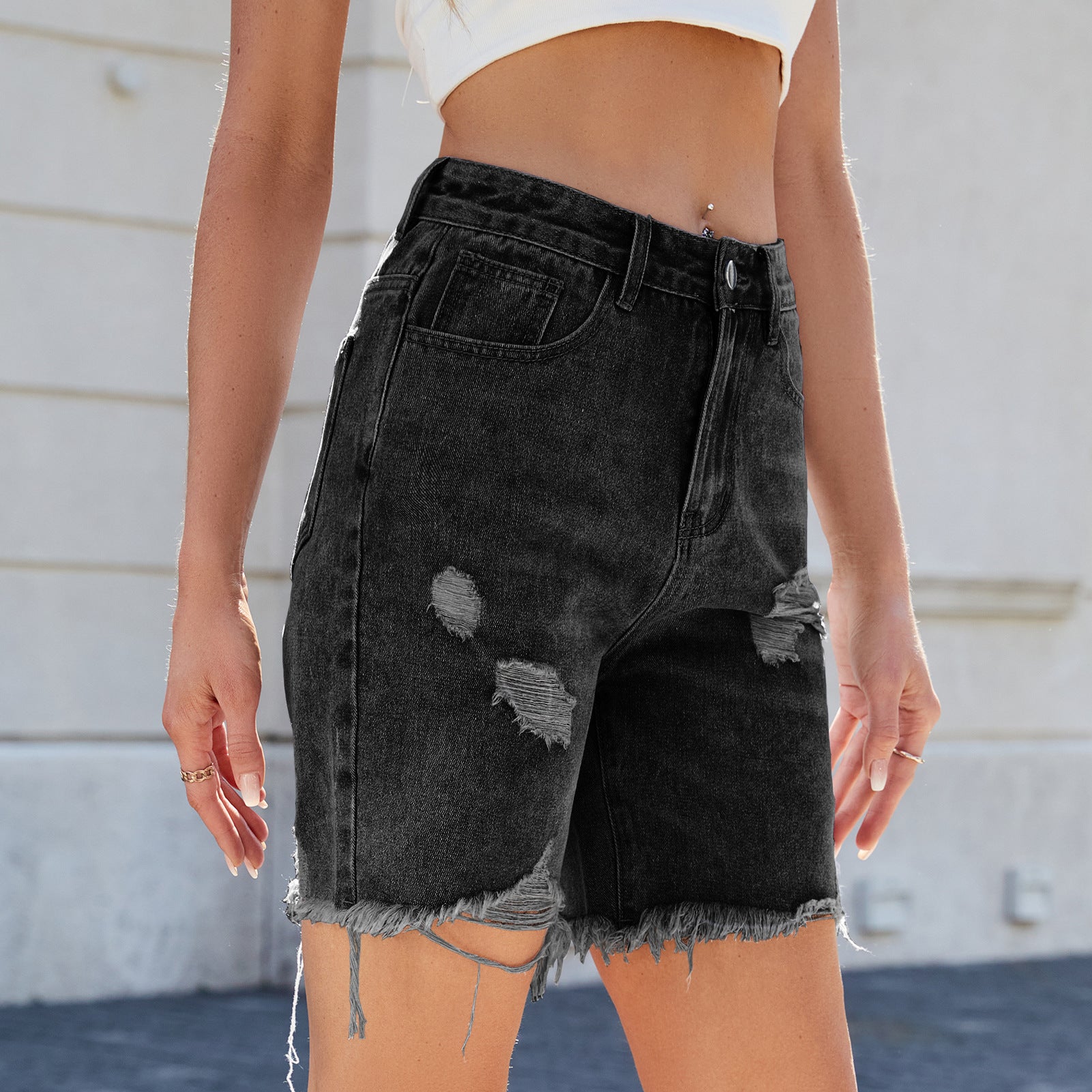 Disse dame distressed denim-shorts med høj talje fra Stilla forener komfort og trendy stil på perfekt vis. Den afslappede pasform og den frynsede kant skaber et afslappet look, der er ideelt til varme dage.