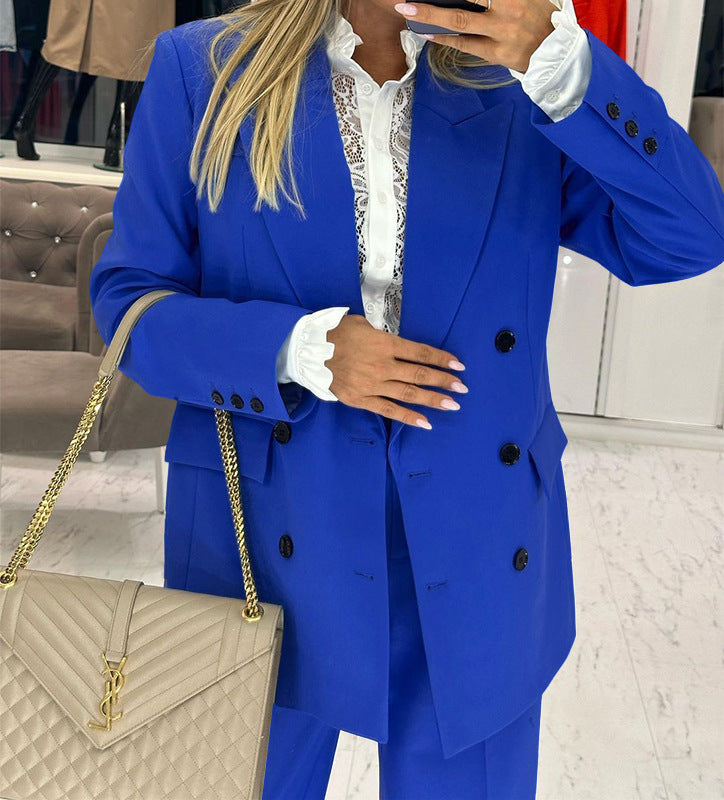 Oplev det stilfulde dobbelt-knappede blazersæt fra Stilla, den perfekte ledsager til enhver elegant begivenhed eller kontoret. Dette blazersæt kombinerer moderigtige elementer med den højeste bærekomfort.
