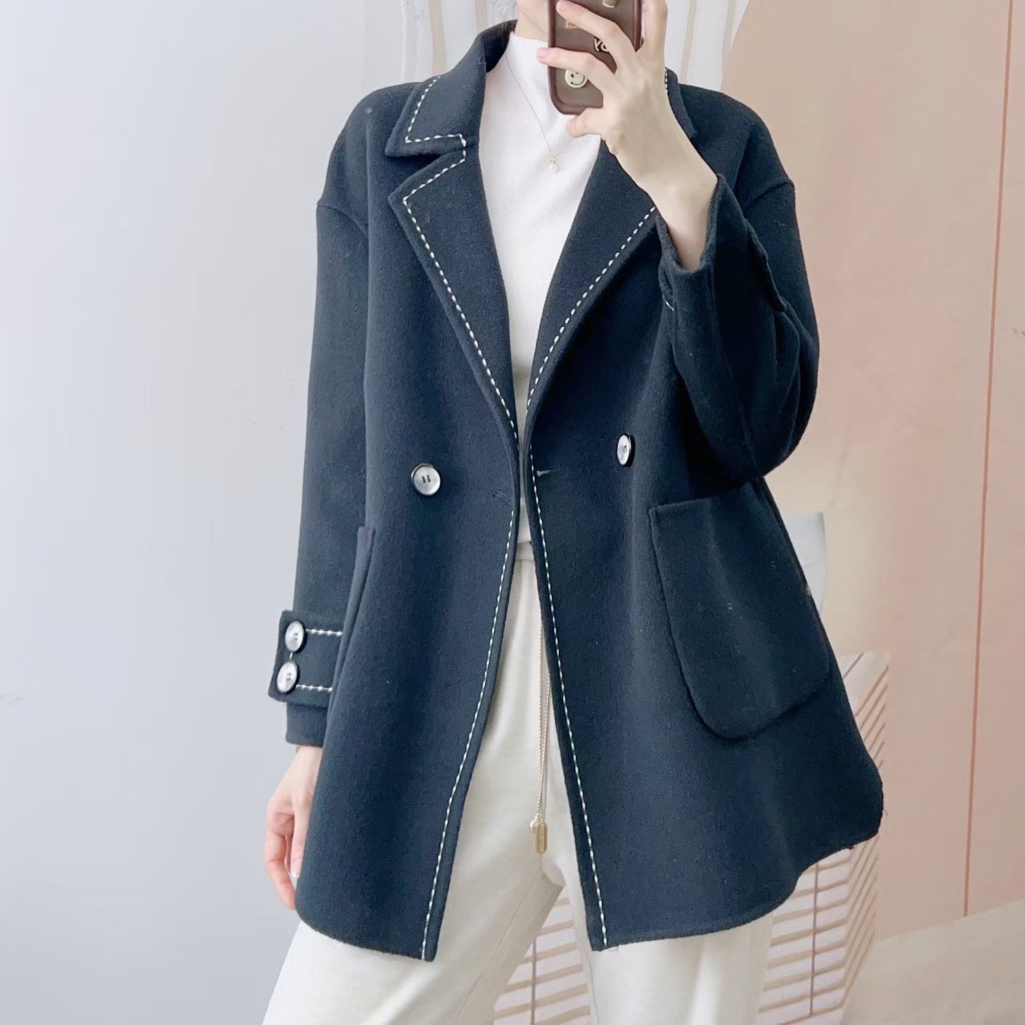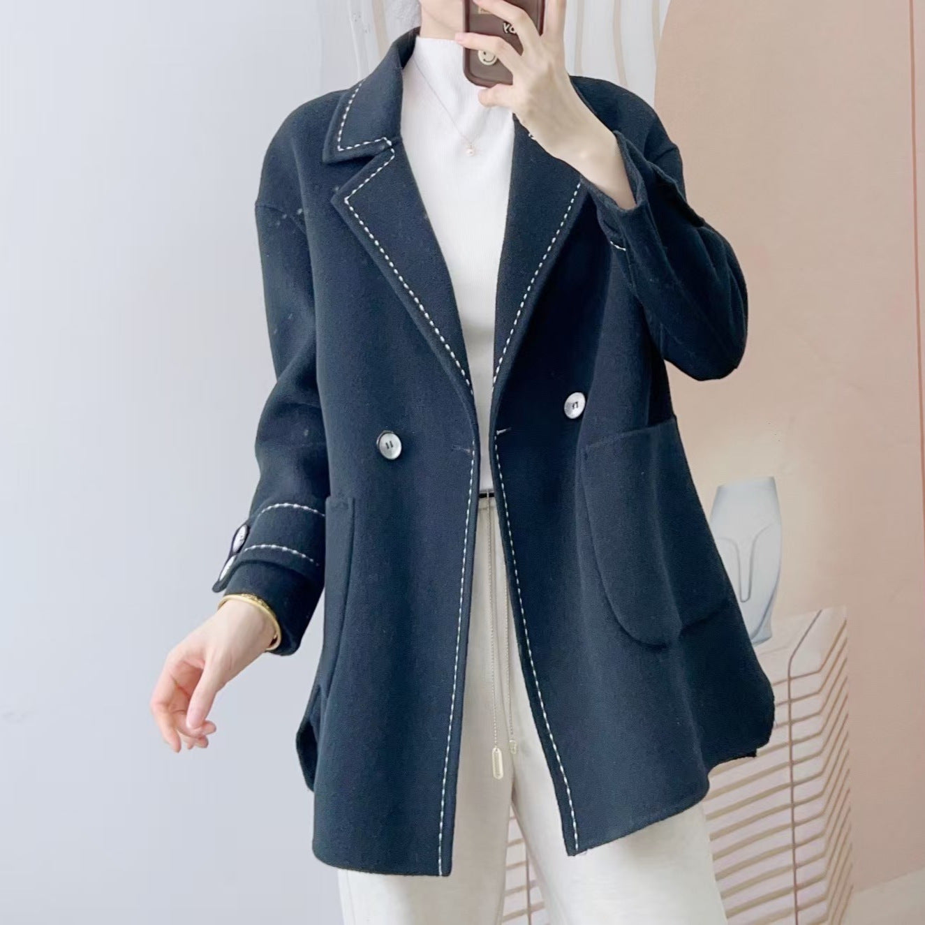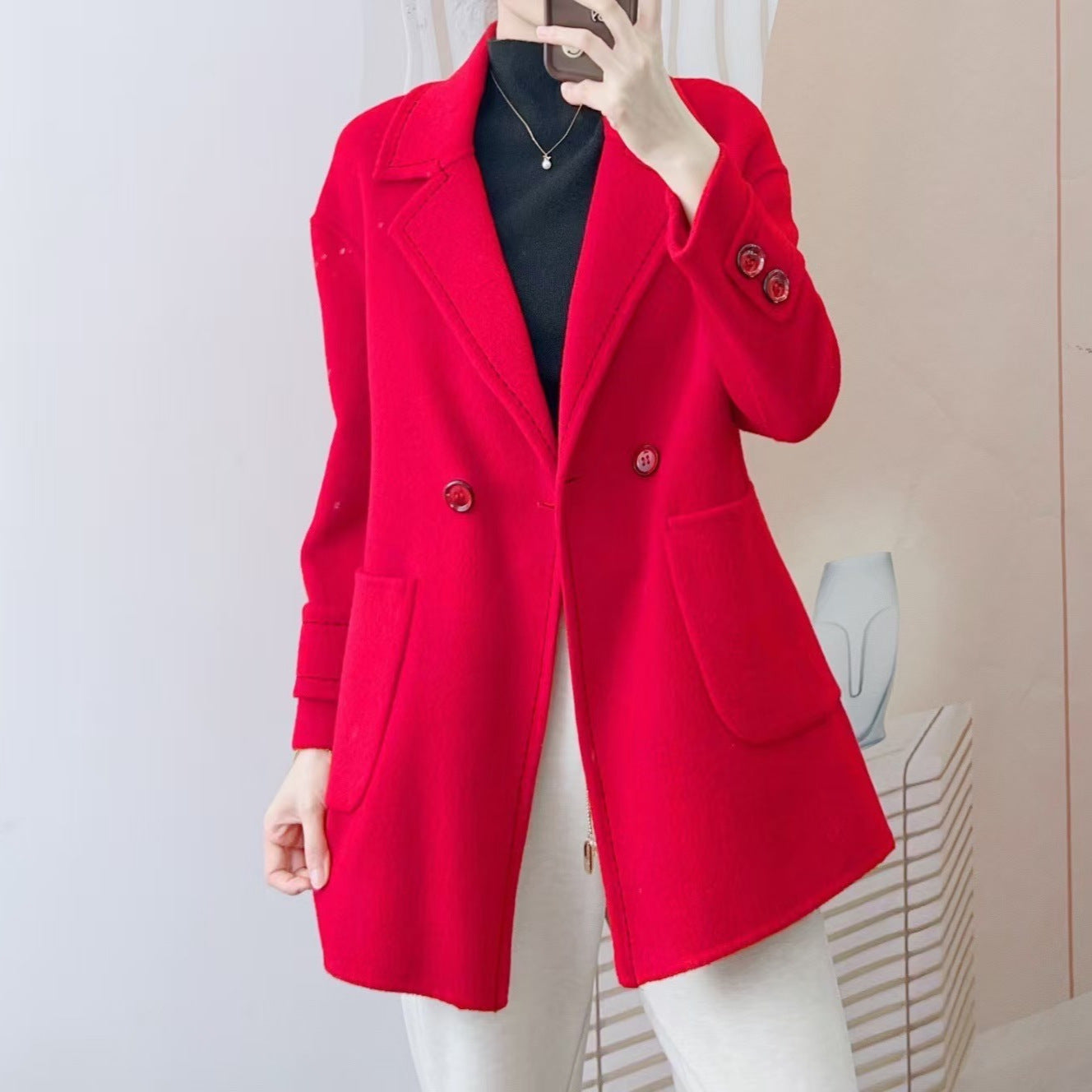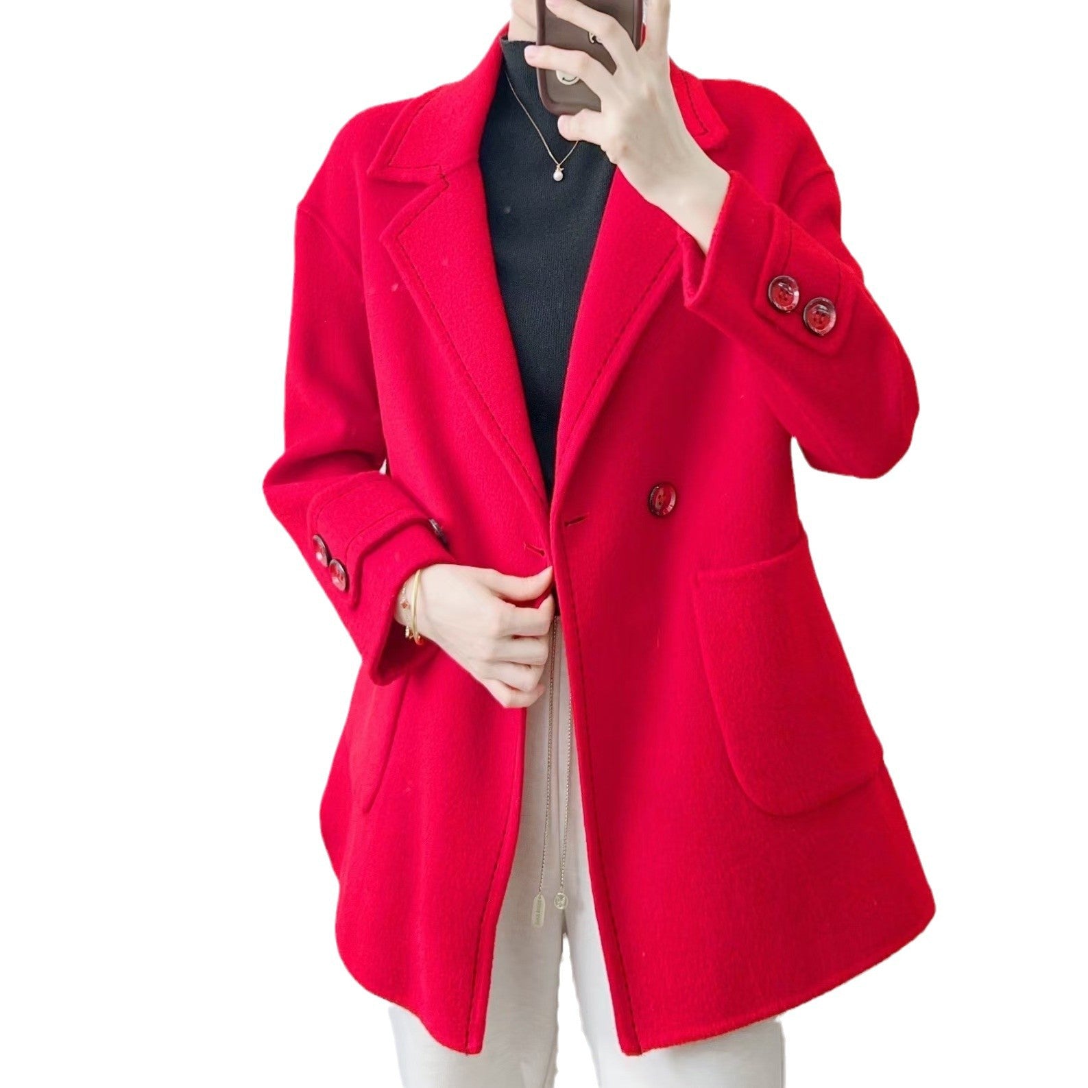 Opdag den perfekte kombination af stil og komfort med vores dame dobbeltknappede uldjakke. Denne elegante jakke er lavet af materiale af høj kvalitet, der er varmt og tilbyder en behagelig pasform. Den dobbelte knaplukning og den klassiske reverskrave giver jakken et tidløst look.