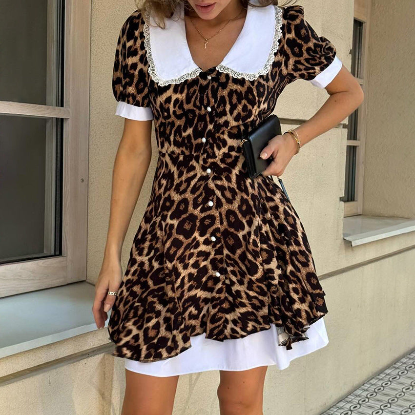 Oplev vores stilfulde dameskjole med et iøjnefaldende dyremønster, ideel til fashionable optrædener. Det særlige ved denne kjole er den elegante krave, der giver et strejf af klasse. Knapdetaljerne skaber et unikt look og muliggør desuden individuel tilpasning. Den er lavet af materialer af høj kvalitet og er behagelig at have på, hvilket føles dejligt mod huden.